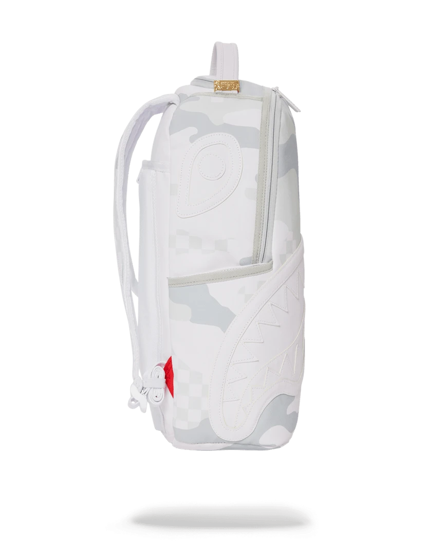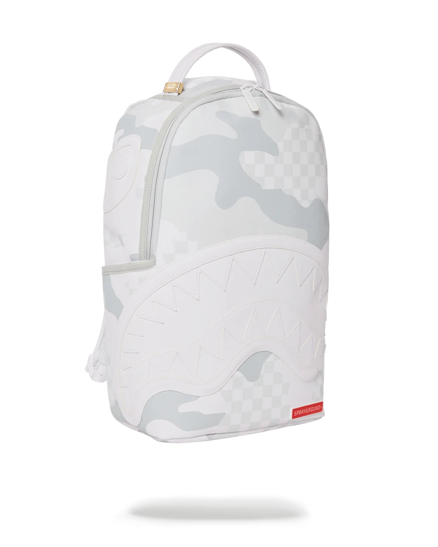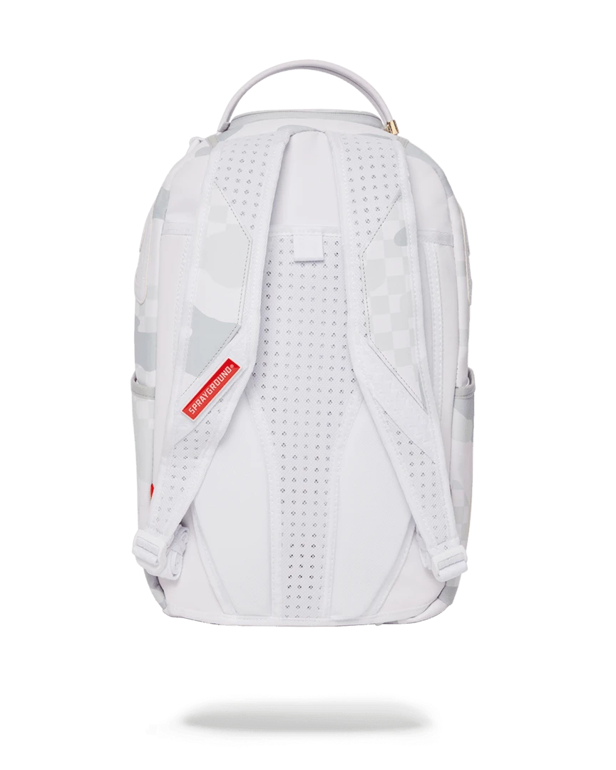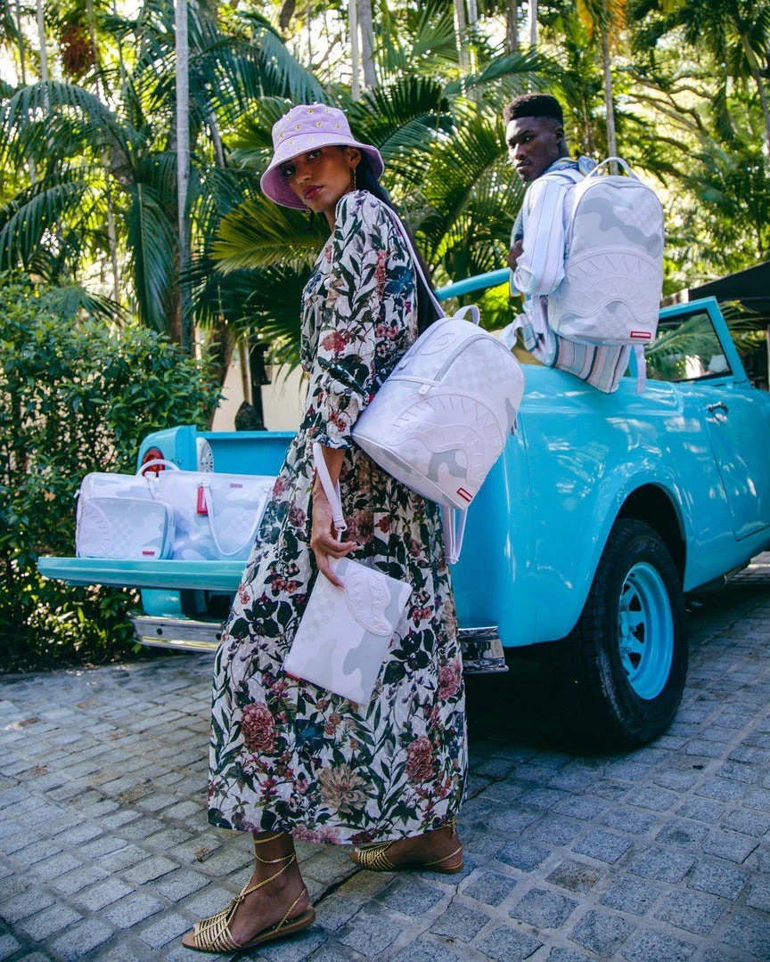 Dimensions: 18″ x 6″ x 11.5″ • Front zipper pocket • Side pockets • Zippered Stash pocket • Separate velour sunglass compartment • Ergonomic mesh back padding • Adjustable Straps for custom sizing • Gold zippers with metal hardware • Metal “Sprayground Authentic” badge • Slide through back sleeve connects to carry-on luggage to free your hands