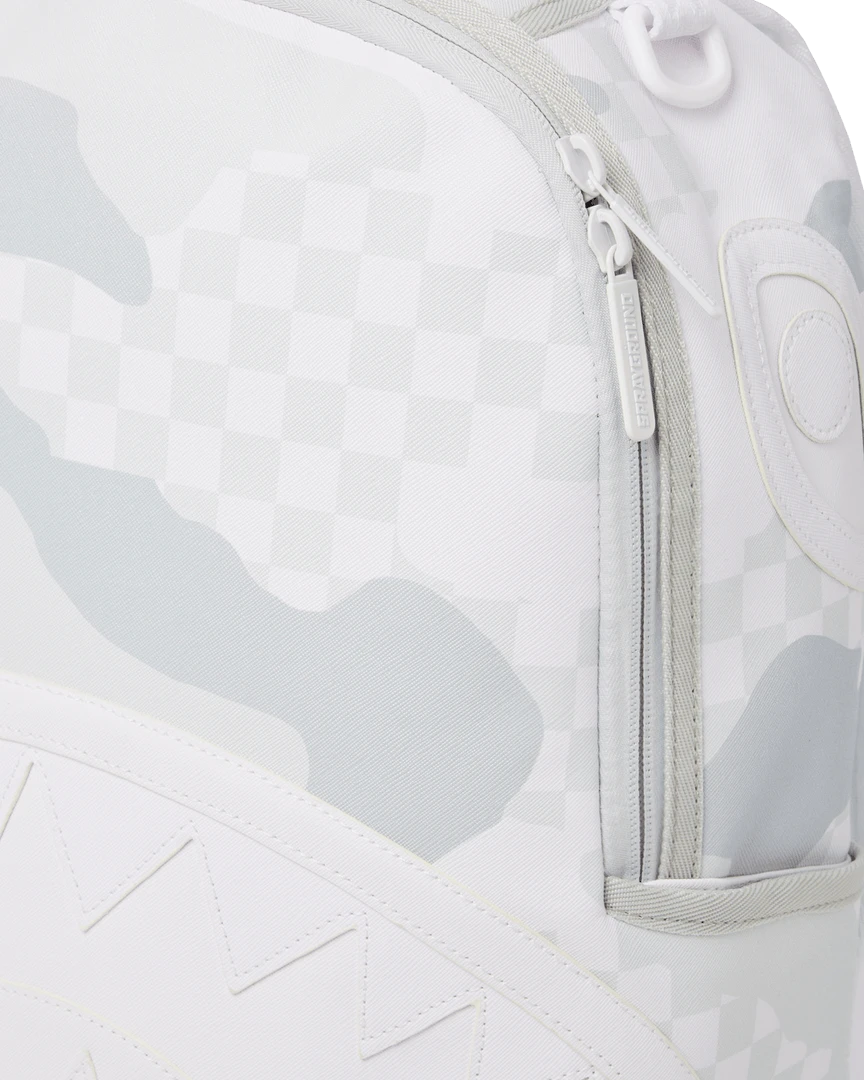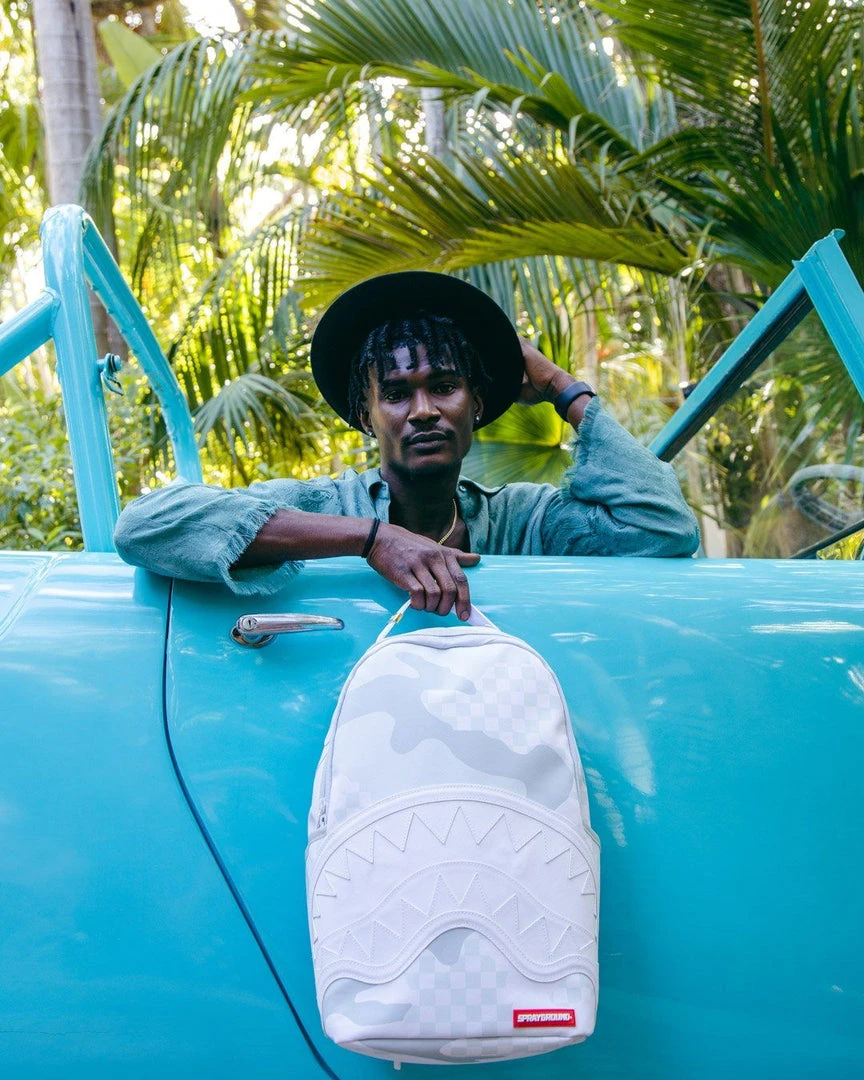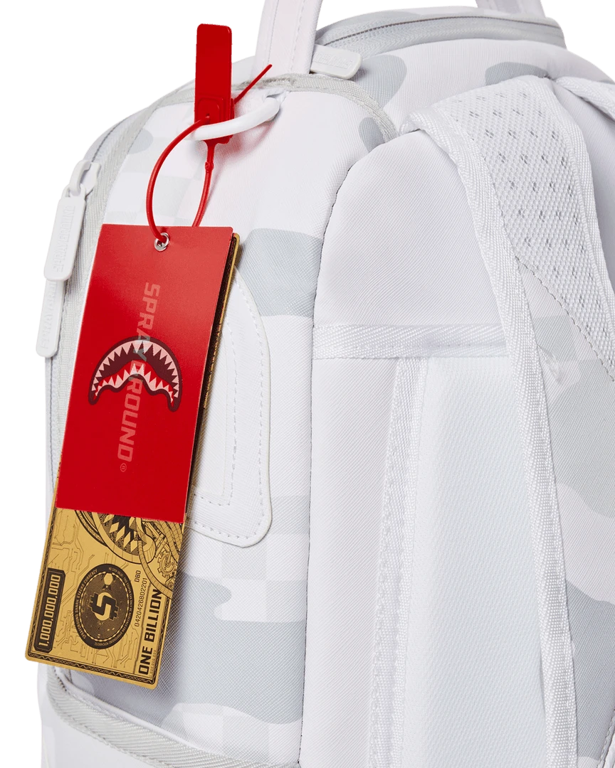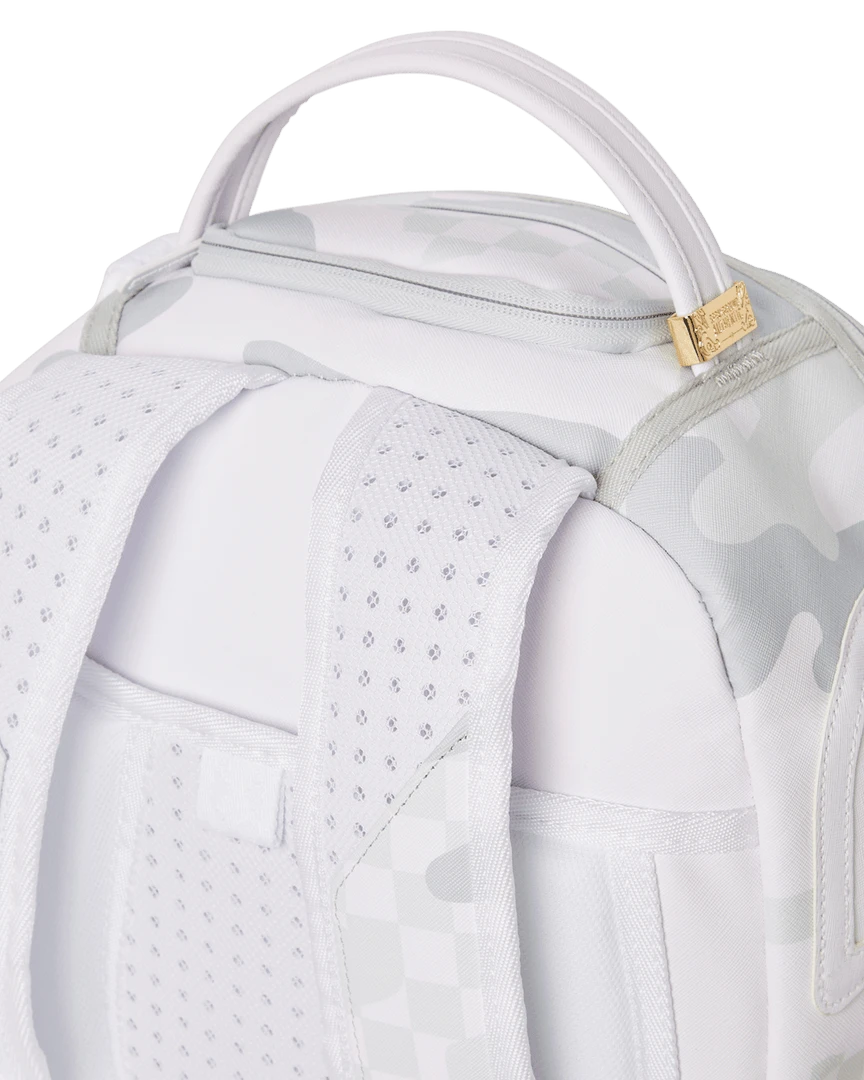 Dimensions: 18″ x 6″ x 11.5″ • Front zipper pocket • Side pockets • Zippered Stash pocket • Separate velour sunglass compartment • Ergonomic mesh back padding • Adjustable Straps for custom sizing • Gold zippers with metal hardware • Metal “Sprayground Authentic” badge • Slide through back sleeve connects to carry-on luggage to free your hands