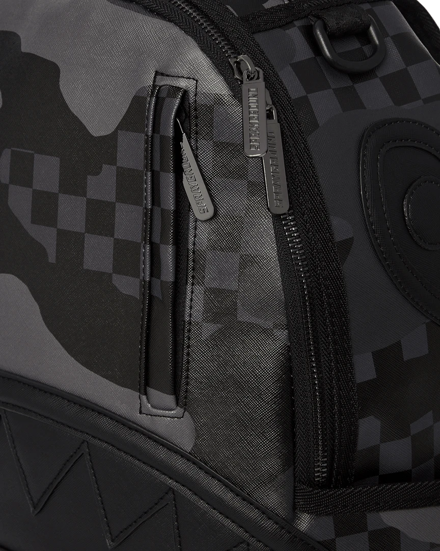 Dimensions: 18″ x 6″ x 11.5″ • Front zipper pocket • Side pockets • Zippered Stash pocket • Separate velour sunglass compartment • Ergonomic mesh back padding • Adjustable Straps for custom sizing • Red zippers with metal hardware • Metal “Sprayground Authentic” badge • Slide through back sleeve connects to carry-on luggage to free your hands