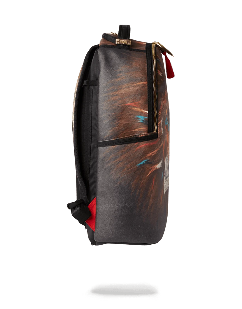 Dimensions: 18″ x 6″ x 11.5″ • Front zipper pocket • Side pockets • Zippered Stash pocket • Separate velour sunglass compartment • Ergonomic mesh back padding • Adjustable Straps for custom sizing • Gold claw and red fringe zippers with metal hardware • Metal “Sprayground Authentic” badge • Slide through back sleeve connects to carry-on luggage to free your hands