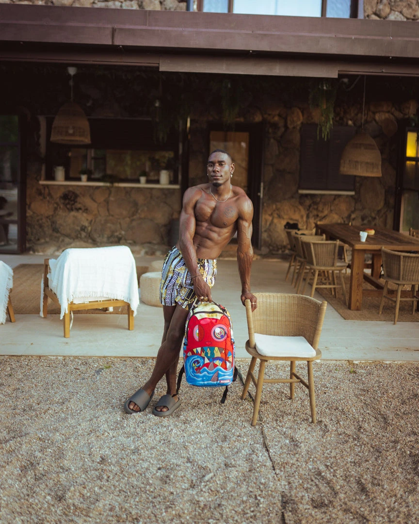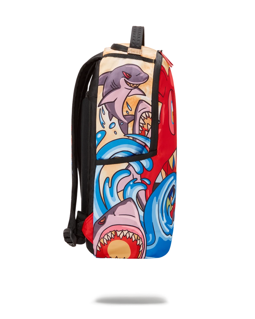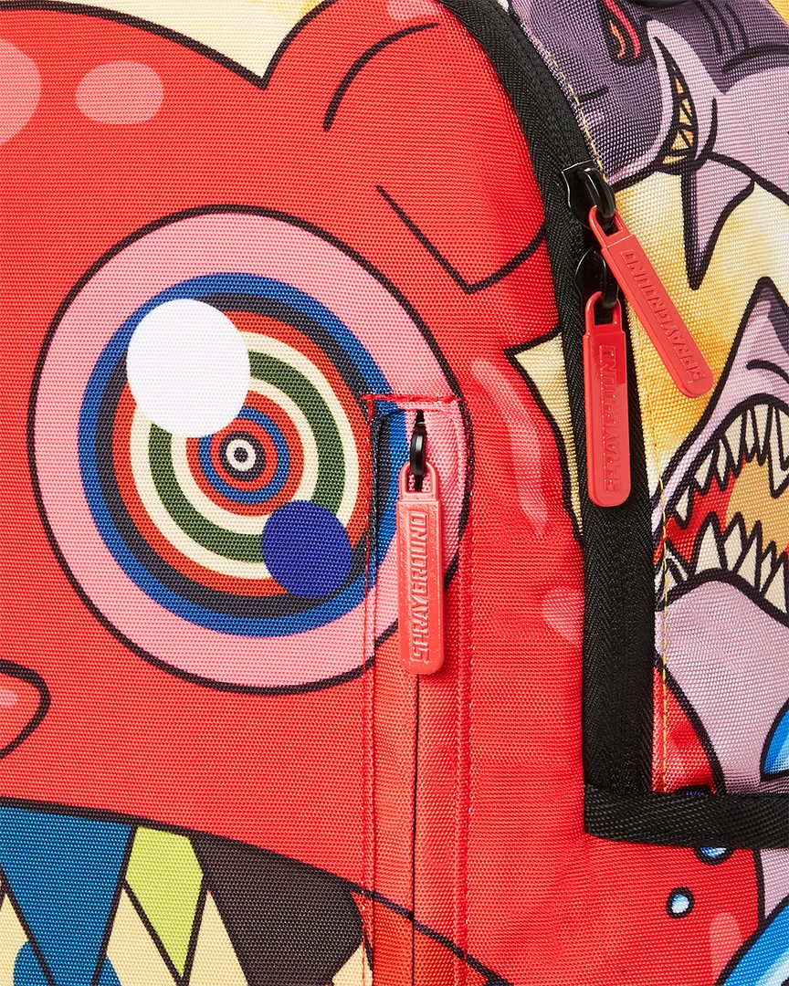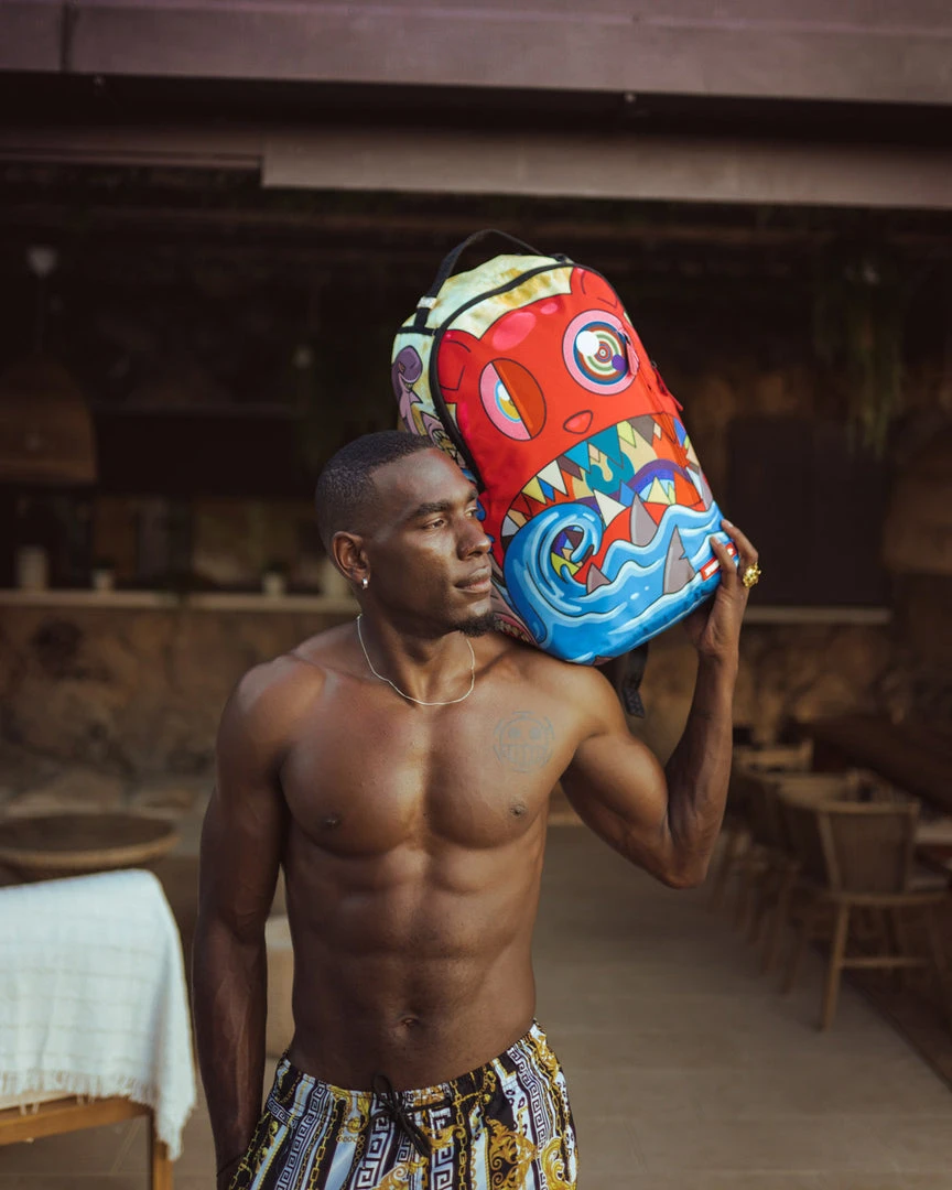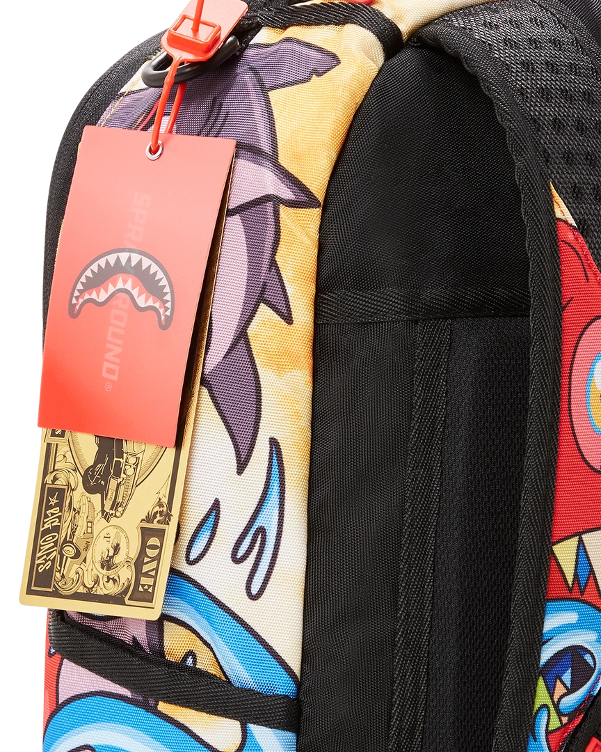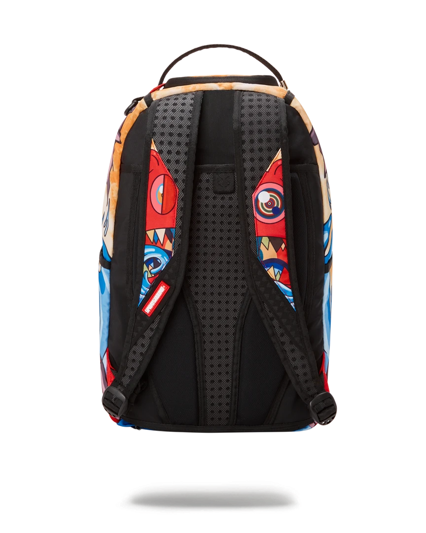Dimensions: 18″ x 6″ x 11.5″ • Front zipper pocket • Side pockets • Zippered Stash pocket • Separate velour sunglass compartment • Ergonomic mesh back padding • Adjustable Straps for custom sizing • Green zippers with metal hardware • Metal “Sprayground Authentic” badge • Slide through back sleeve connects to carry on luggage to free your hands