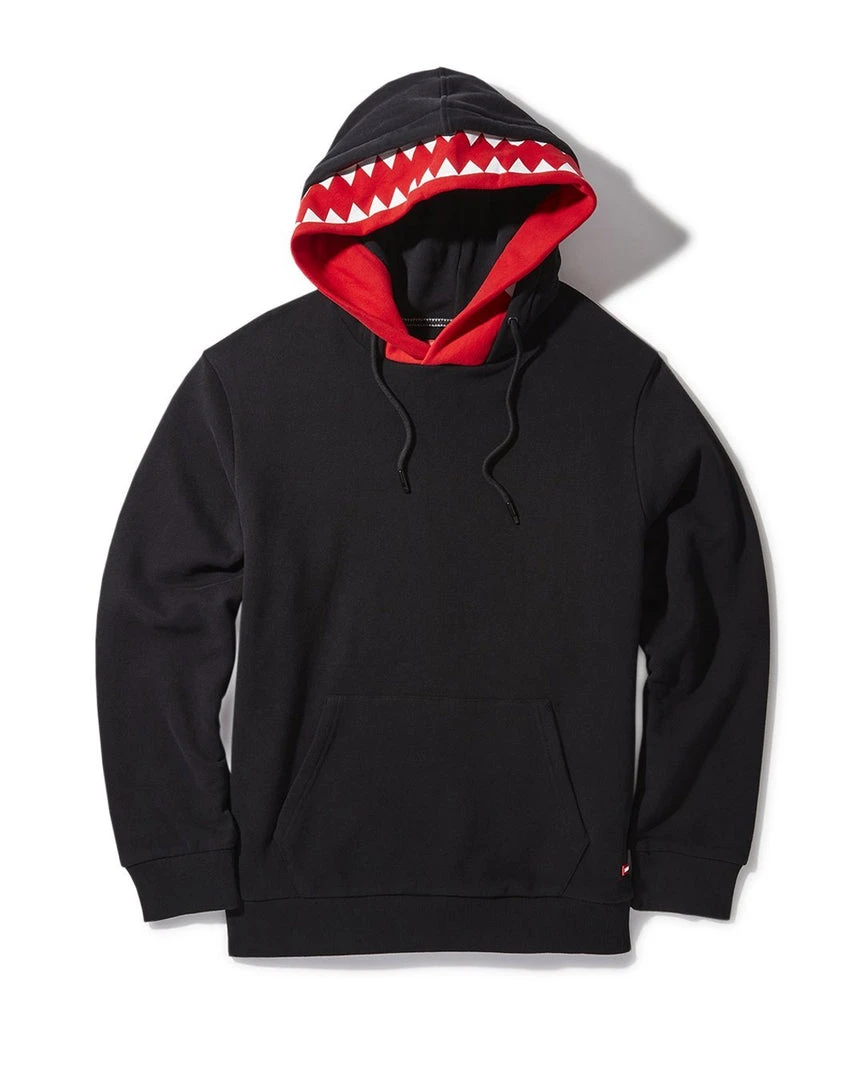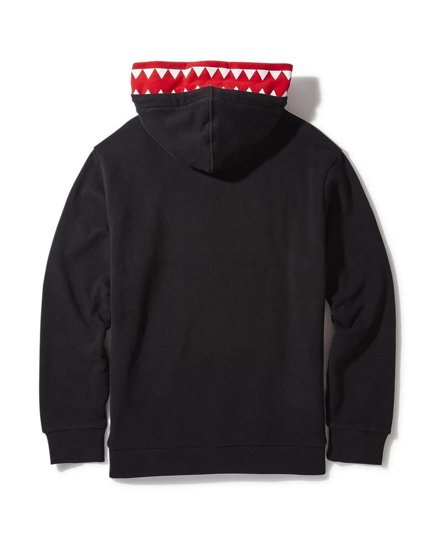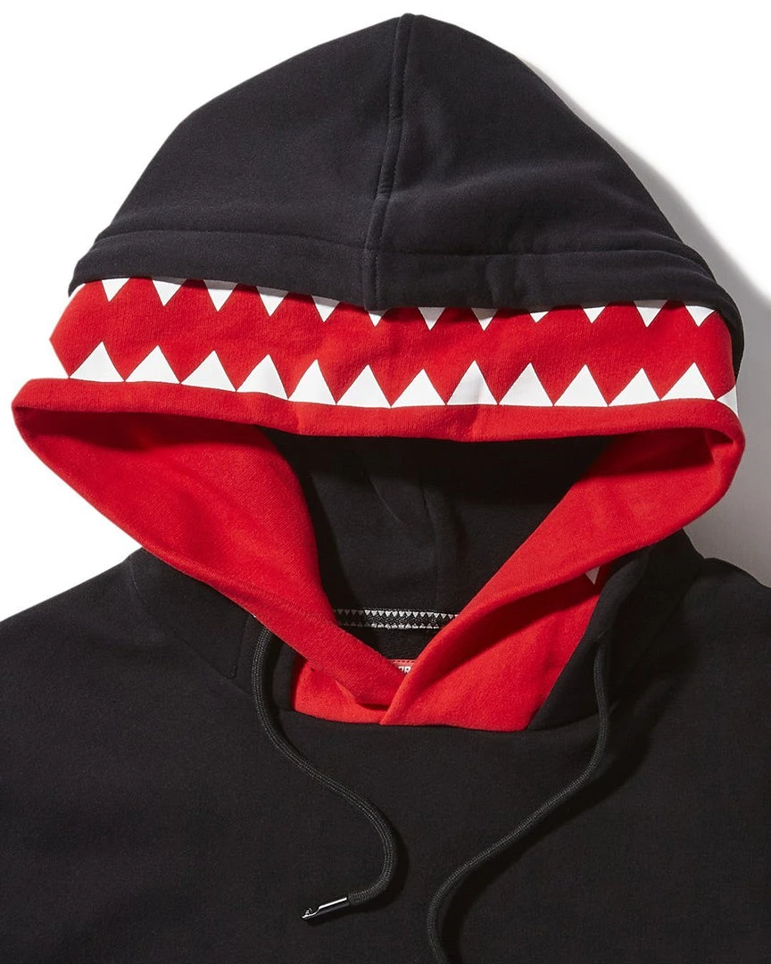 Oversized Vertical shark mouth logo print detail at hood opening in contrast material
