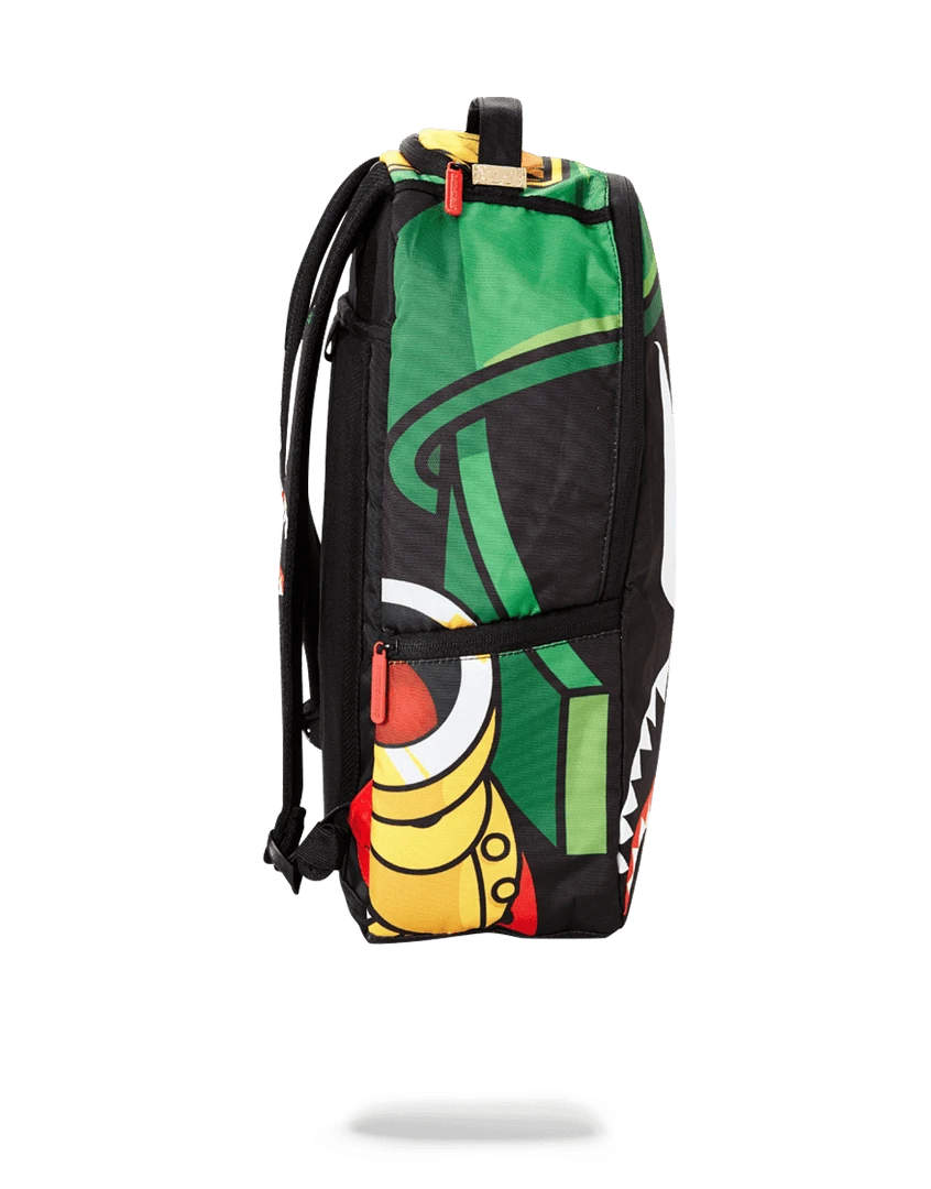 Dimensions: 18″ x 6″ x 11.5″ ∙ Front zipper pocket ∙ Side pockets ∙ Zippered Stash pocket ∙ Ergonomic mesh back padding ∙ Adjustable Straps for custom sizing ∙ Nylon Zippers with Metal Hardware ∙ Metal “Sprayground Authentic” badge ∙ Slide through back sleeve connects to Carry on luggage to free your hands