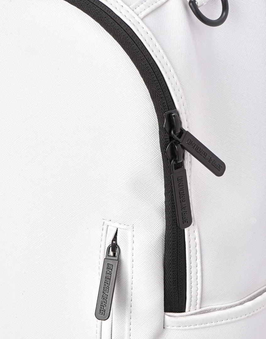 Dimensions: 18″ x 6″ x 11.5″ • Front zipper pocket • Side pockets • Zippered Stash pocket • Separate velour sunglass compartment • Ergonomic mesh back padding • Adjustable Straps for custom sizing • Black zippers with metal hardware • Metal “Sprayground Authentic” badge • Slide through back sleeve connects to carry-on luggage to free your hands