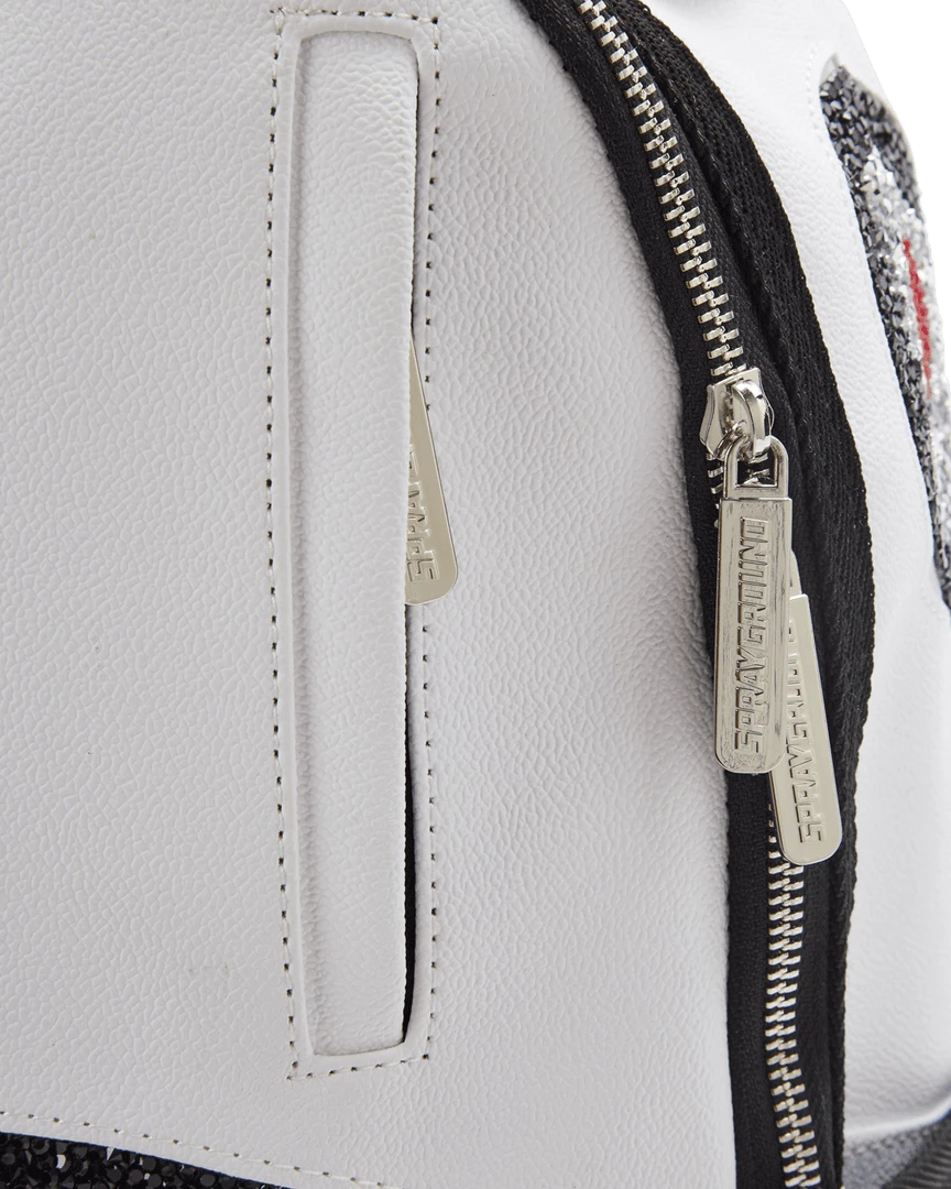 Dimensions: 18″ x 6″ x 11.5″ • Front zipper pocket • Side pockets • Zippered Stash pocket • Separate velour sunglass compartment • Ergonomic mesh back padding • Adjustable Straps for custom sizing • Gold zippers with metal hardware • Metal “Sprayground Authentic” badge • Slide through back sleeve connects to carry-on luggage to free your hands