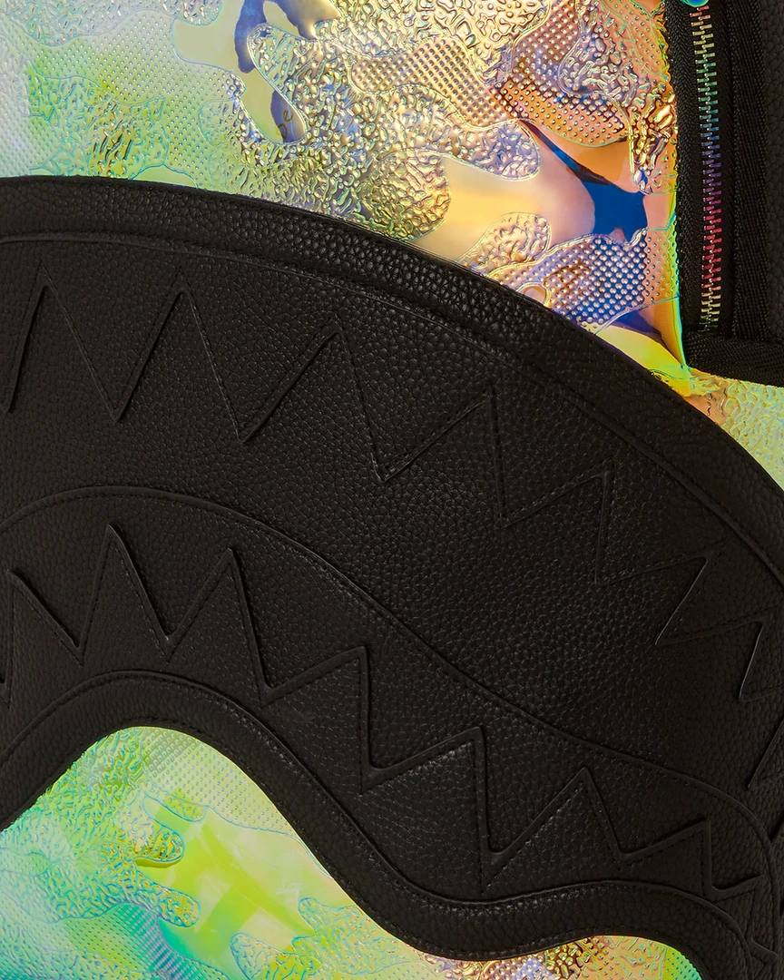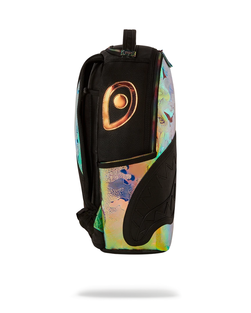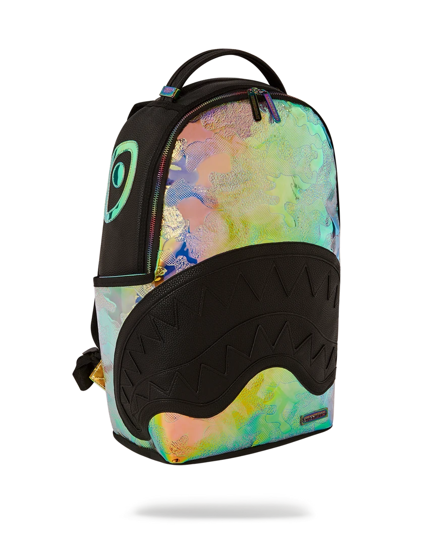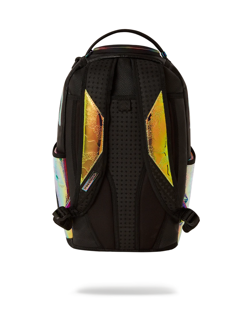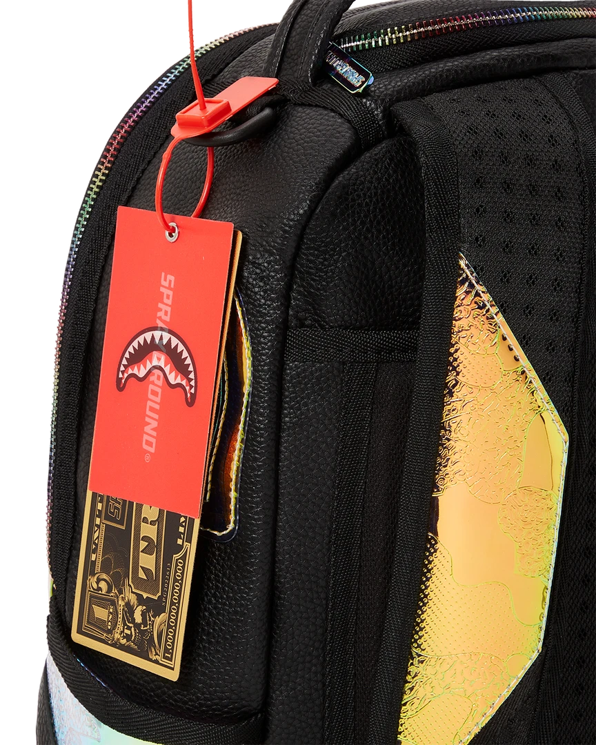 Dimensions: 18″ x 6″ x 11.5″ • Front zipper pocket • Side pockets • Zippered Stash pocket • Separate velour sunglass compartment • Ergonomic mesh back padding • Adjustable Straps for custom sizing • Red zippers with metal hardware • Metal “Sprayground Authentic” badge • Slide through back sleeve connects to carry-on luggage to free your hands