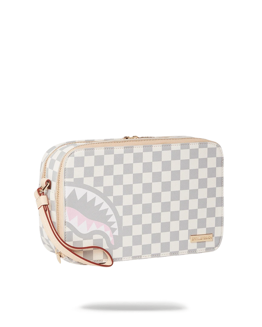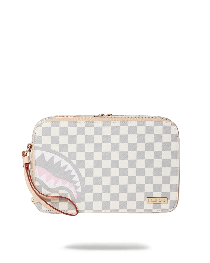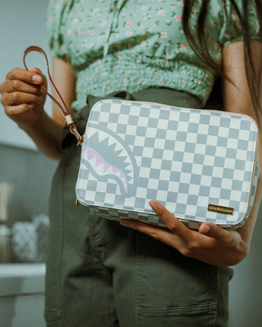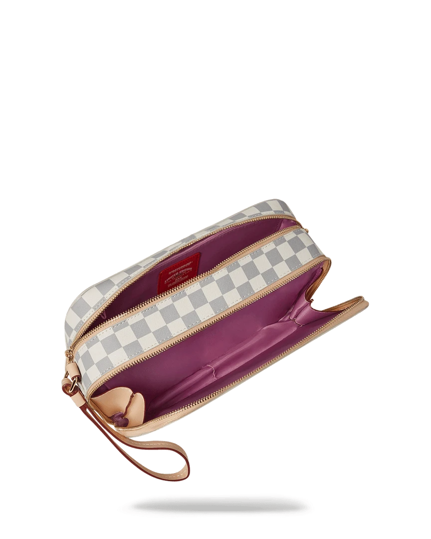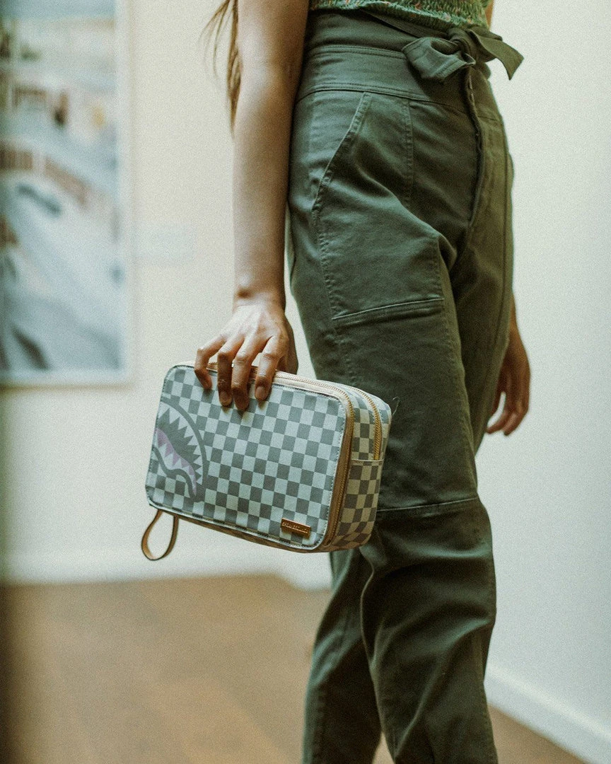 Dimensions: 10″ x 3.25″ x 8″ • Two zippered compartments • Side handle • Gunmetal zippers with metal hardware