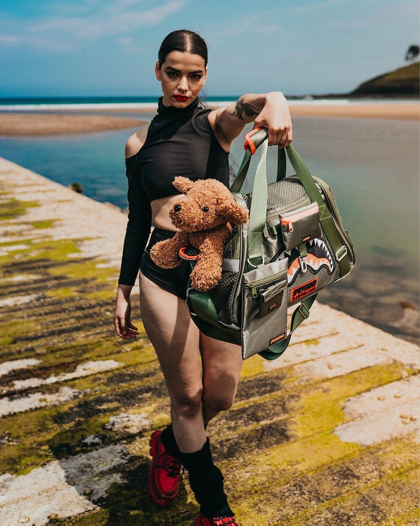 Dimensions: W 17” x H 10” x D 8.5” • Double zipper opening • Top handle • Removable side handle • Zippered Stash pocket • Padded shoulder strap • Non-skid feet • Quick access opening • Mesh ventilation