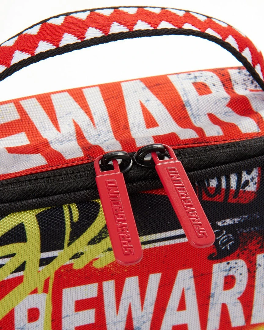 Dimensions: 8.5″ x 3″ x 8.5″ • Double zipper opening • Top handle • Removeable side handle • Red zippers with metal hardware • Zippered stash pocket