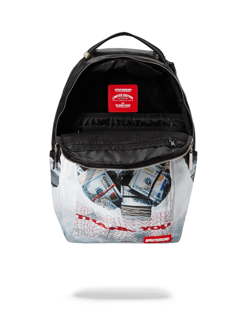 Dimensions: 18″ x 6″ x 11.5″ ∙ Front zipper pocket ∙ Side pockets ∙ Zippered Stash pocket ∙ Ergonomic mesh back padding ∙ Adjustable Straps for custom sizing ∙ Nylon Zippers with Metal Hardware ∙ Metal “Sprayground Authentic” badge ∙ Slide through back sleeve connects to Carry on luggage to free your hands