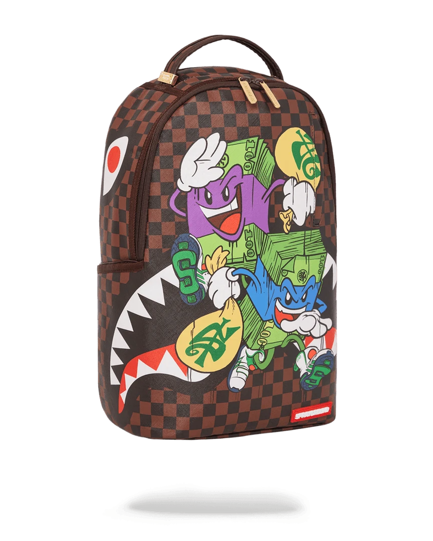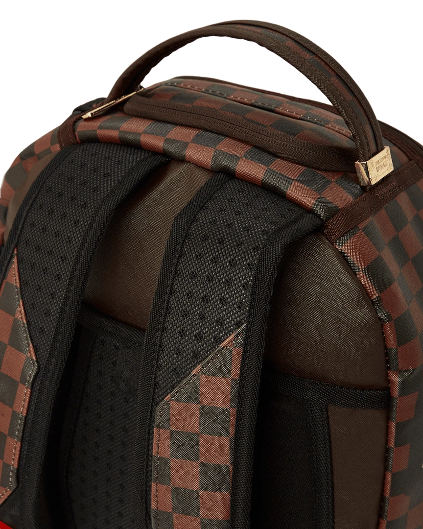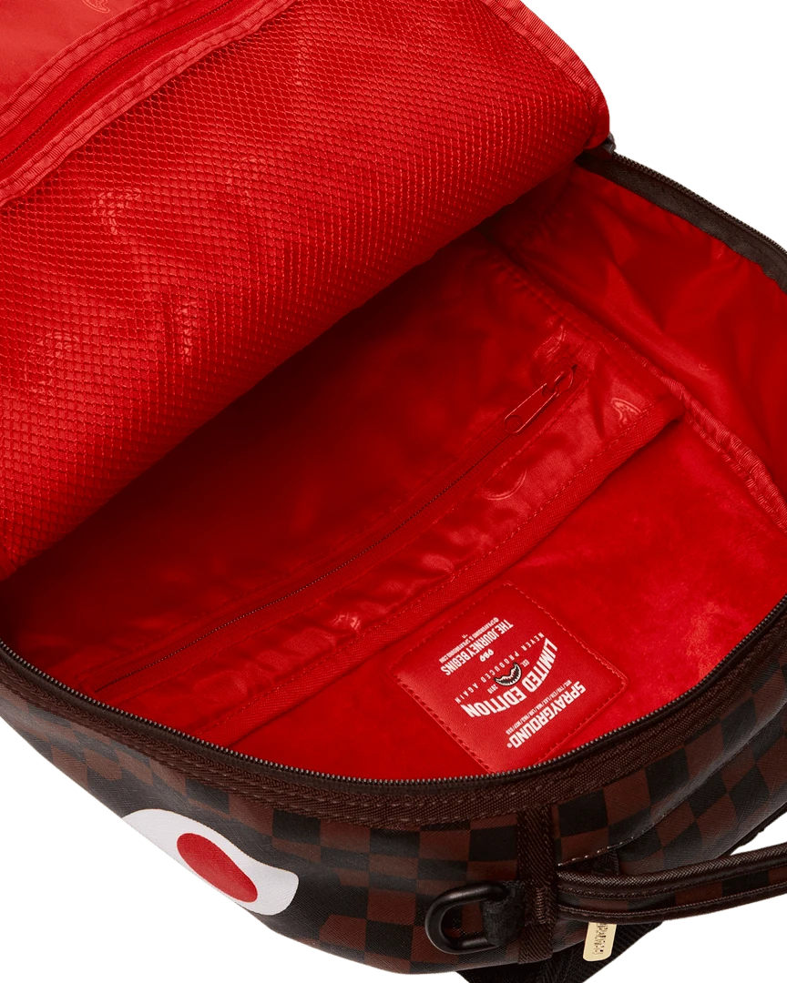 Dimensions: 18″ x 6″ x 11.5″ • Front zipper pocket • Side pockets • Zippered Stash pocket • Separate velour sunglass compartment • Ergonomic mesh back padding • Adjustable Straps for custom sizing • Red zippers with metal hardware • Metal “Sprayground Authentic” badge • Slide through back sleeve connects to carry-on luggage to free your hands