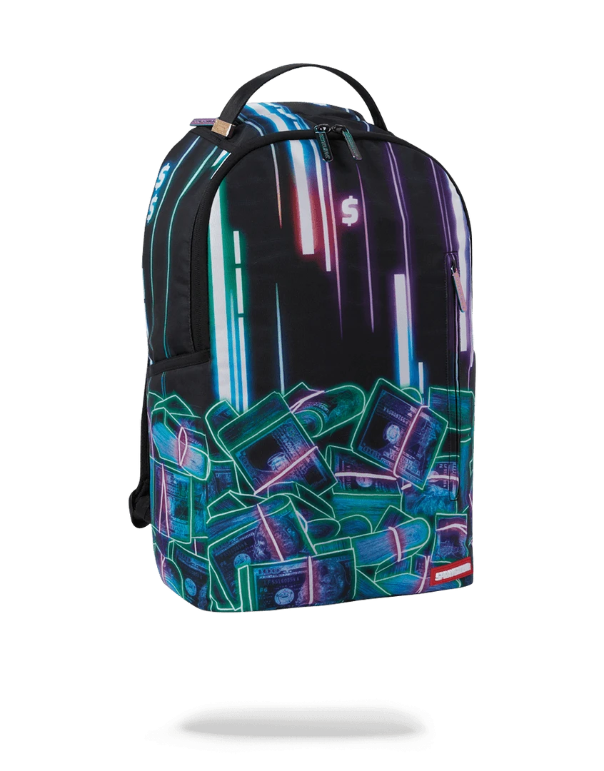 SPRAYGROUND 2077. The Neon Lights of Shark City Glow at Night with The New Limited Edition Crypto Stacks & Nite Dragon Backpacks, Luggage, Tote, Pouch & FaceMask. GLOWS NOW!