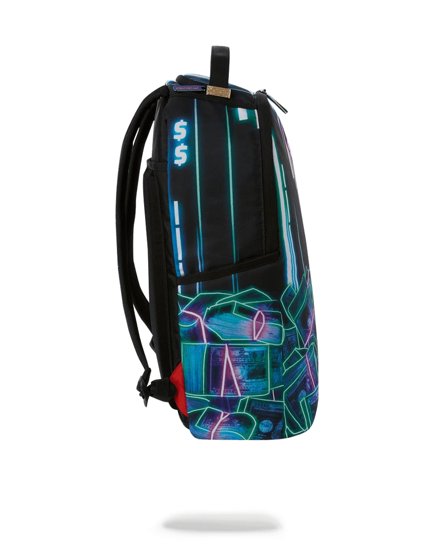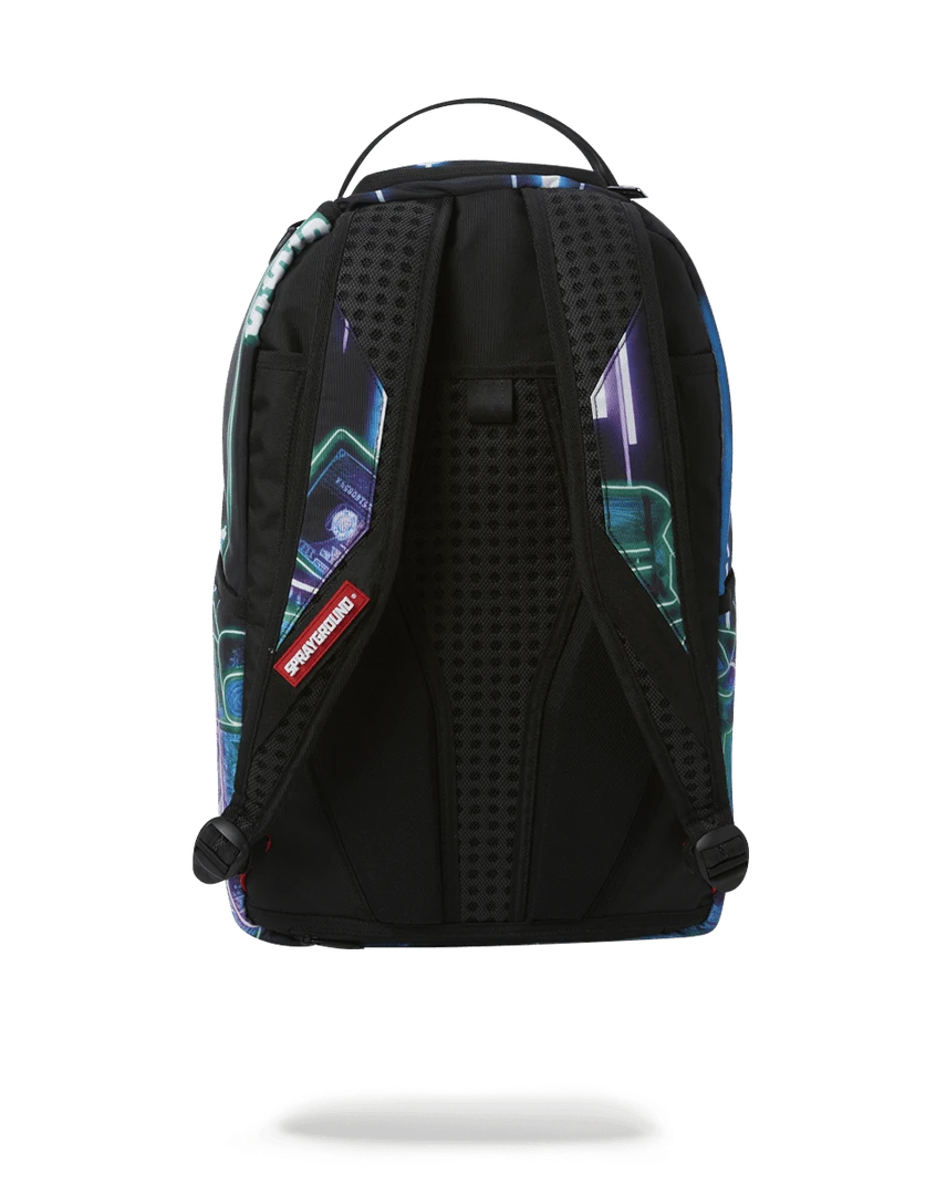 Dimensions: 18″ x 6″ x 11.5″ • Front zipper pocket • Side pockets • Zippered Stash pocket • Separate velour sunglass compartment • Ergonomic mesh back padding • Adjustable Straps for custom sizing • Neon chrome zippers with metal hardware • Metal “Sprayground Authentic” badge • Slide through back sleeve connects to carry-on luggage to free your hands