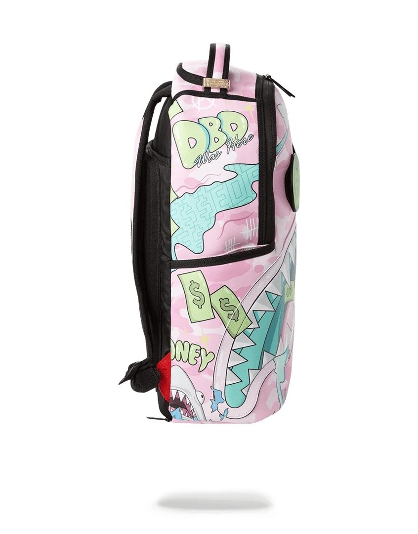 Dimensions: 18″ x 6″ x 11.5″ • Side pockets • Zippered Stash pocket • Separate velour sunglass compartment • Ergonomic mesh back padding • Adjustable Straps for custom sizing • Black lightning bolt zippers with metal hardware • Metal “Sprayground Authentic” badge • Slide through back sleeve connects to carry-on luggage to free your hands
