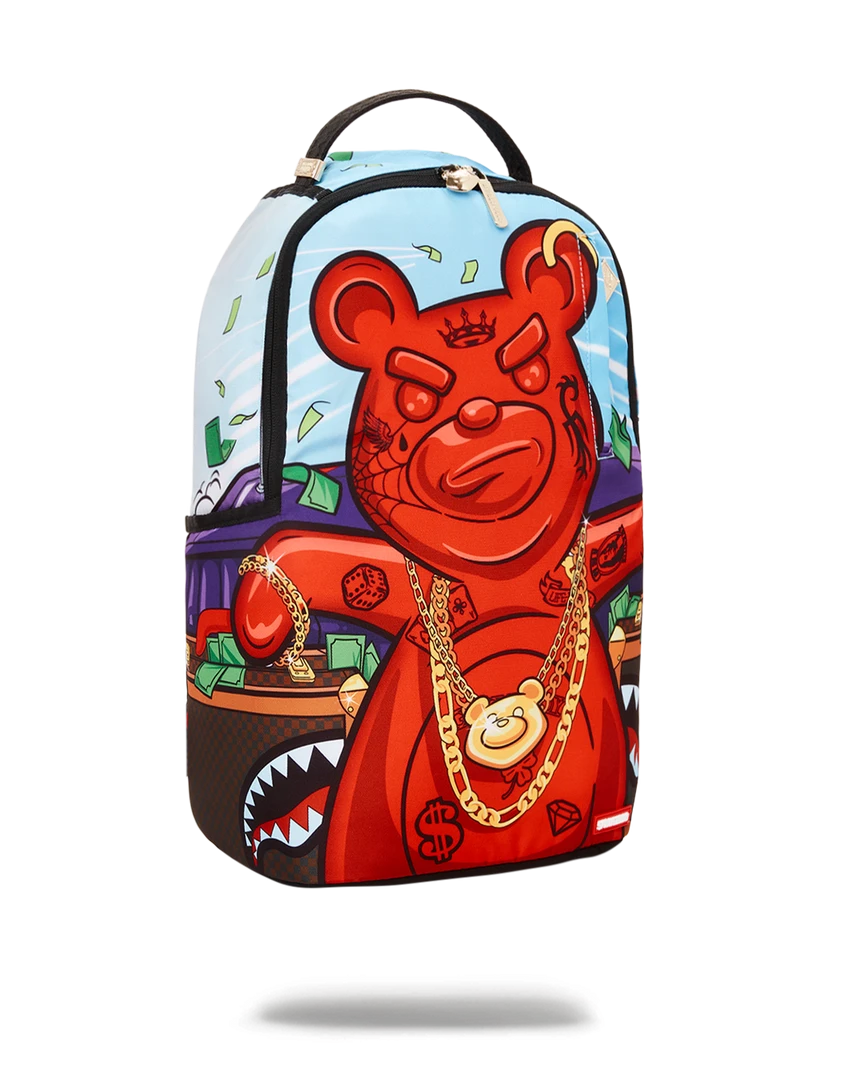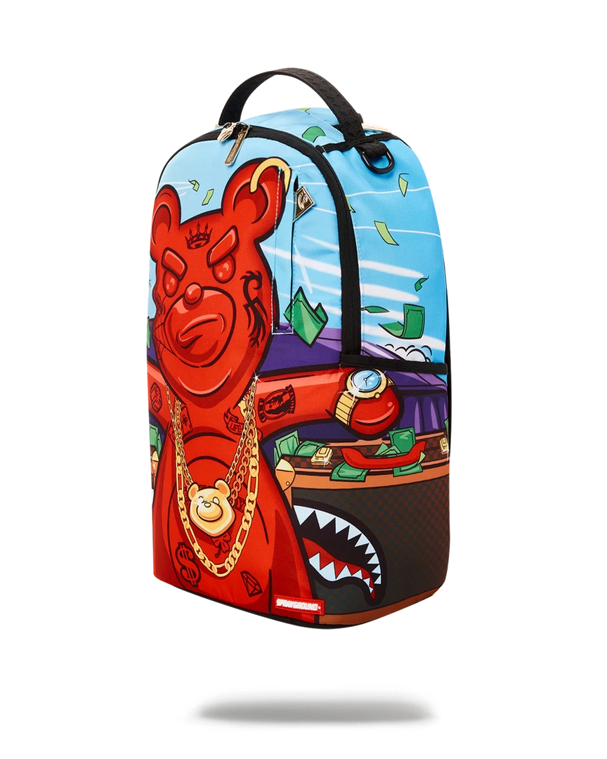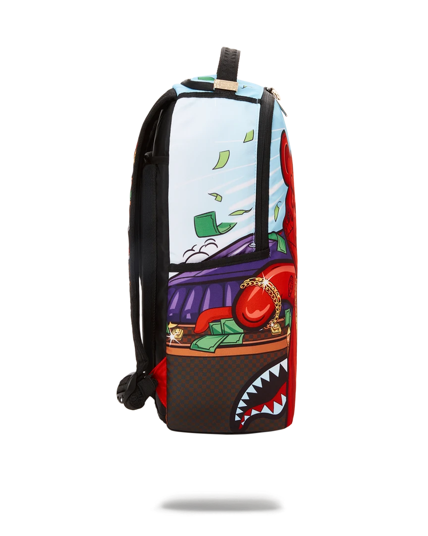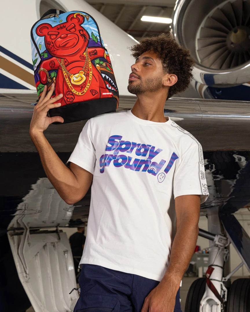 Dimensions: 18″ x 6″ x 11.5″ • Front zipper pocket • Side pockets • Zippered Stash pocket • Separate velour sunglass compartment • Ergonomic mesh back padding • Adjustable Straps for custom sizing • Green zippers with metal hardware • Metal “Sprayground Authentic” badge • Slide through back sleeve connects to carry on luggage to free your hands