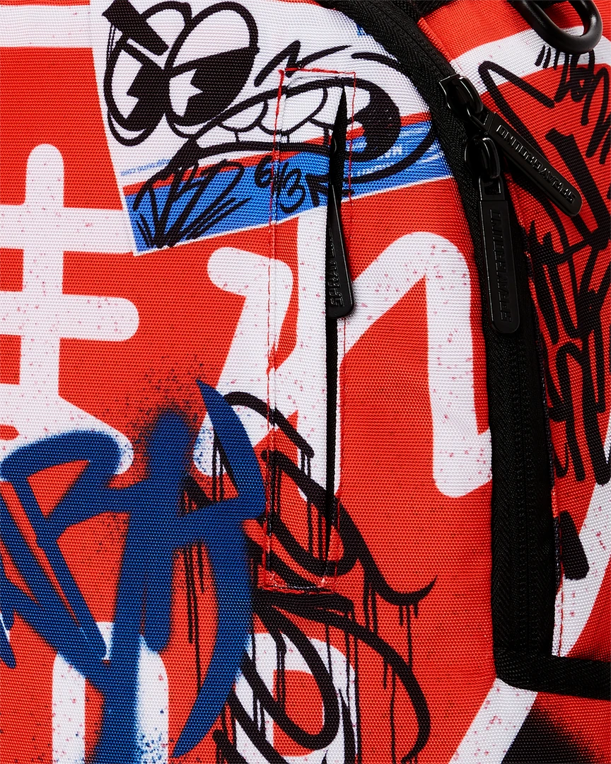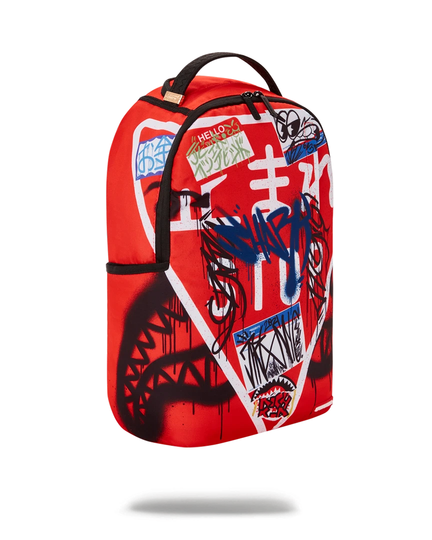 Dimensions: 18″ x 6″ x 11.5″ • Front zipper pocket • Side pockets • Zippered Stash pocket • Separate velour sunglass compartment • Ergonomic mesh back padding • Adjustable Straps for custom sizing • Green zippers with metal hardware • Metal “Sprayground Authentic” badge • Slide through back sleeve connects to carry on luggage to free your hands