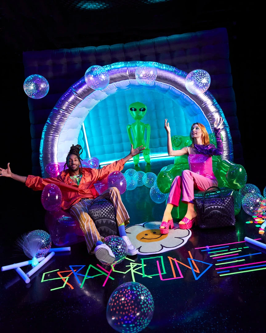 The fiber optic fabric is powered upon pressing the “illuminate” button located on the inside wall of the bag.