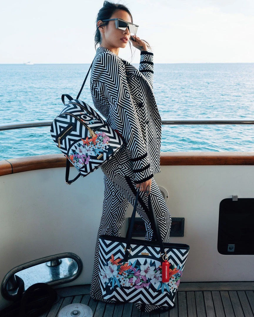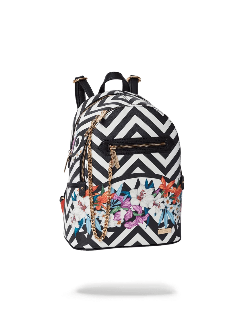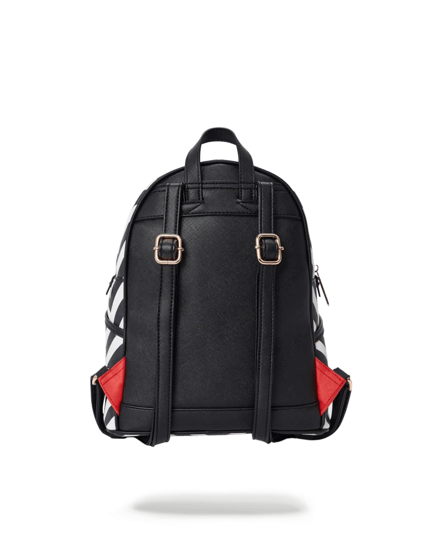 Dimensions: 10″ x 5″ x 11.5″ • Two large main zippered compartments • Side pockets • Zippered Stash pocket • Adjustable straps for custom sizing • Gold zippers with metal hardware
