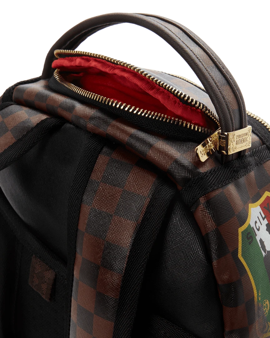 Dimensions: 18″ x 6″ x 11.5″ • Front zipper pocket • Side pockets • Zippered Stash pocket • Separate velour sunglass compartment • Ergonomic mesh back padding • Adjustable Straps for custom sizing • Gold zippers with metal hardware • Metal “Sprayground Authentic” badge • Slide through back sleeve connects to carry-on luggage to free your hands