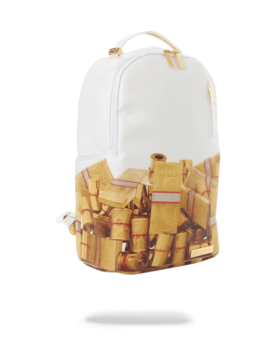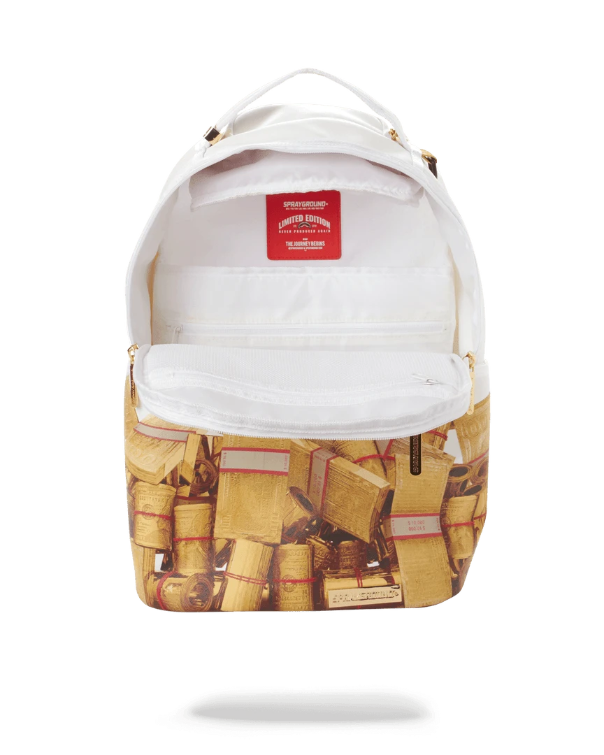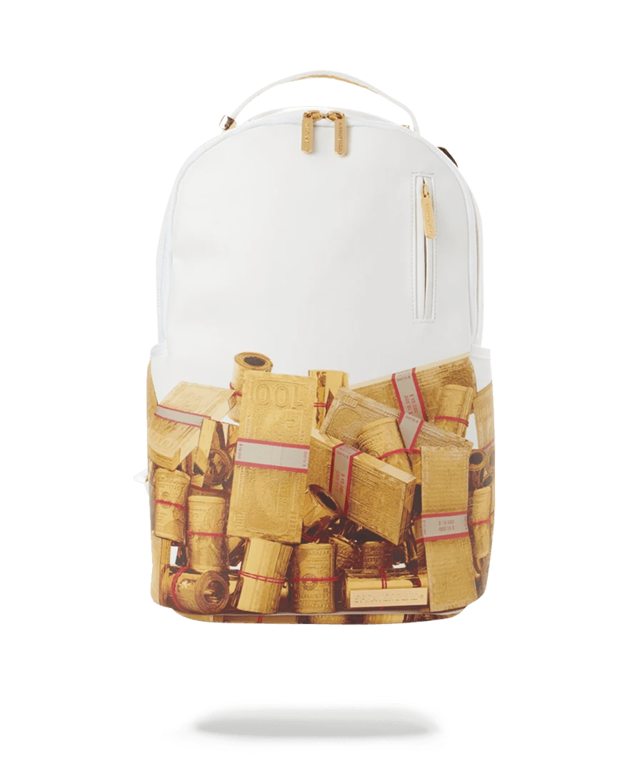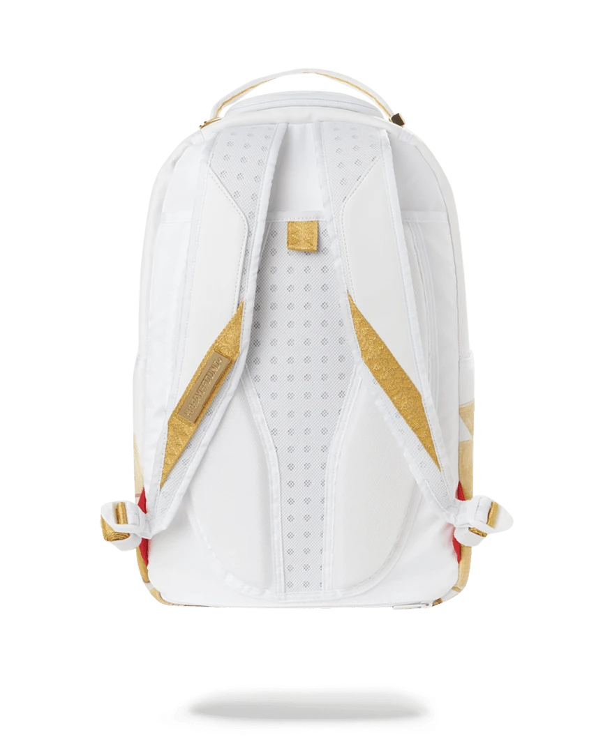 Dimensions: 18″ x 6″ x 11.5″ • Front zipper pocket • Side pockets • Zippered Stash pocket • Separate velour sunglass compartment • Ergonomic mesh back padding • Adjustable Straps for custom sizing • Gold zippers with metal hardware • Metal “Sprayground Authentic” badge • Slide through back sleeve connects to carry-on luggage to free your hands