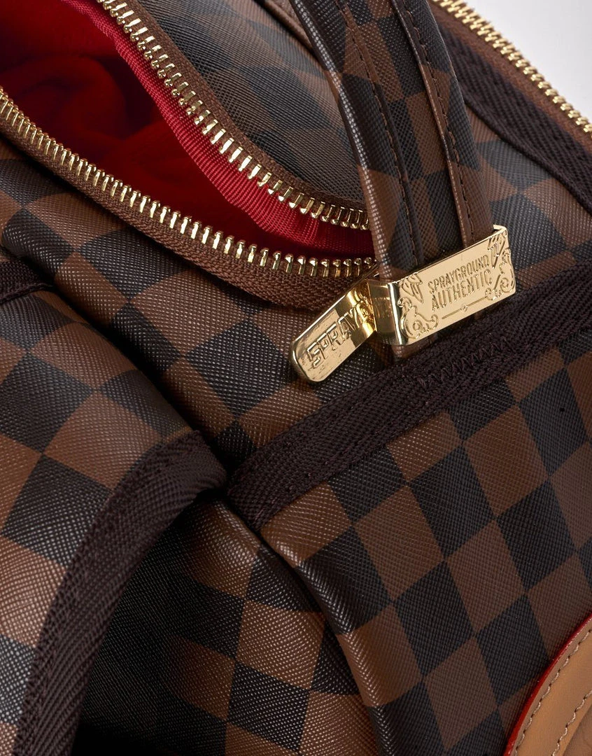 Dimensions: 18″ x 6″ x 11.5″ • Front zipper pocket • Side pockets • Zippered Stash pocket • Separate velour sunglass compartment • Ergonomic mesh back padding • Adjustable Straps for custom sizing • Gold zippers with metal hardware • Metal “Sprayground Authentic” badge • Slide through back sleeve connects to carry-on luggage to free your hands