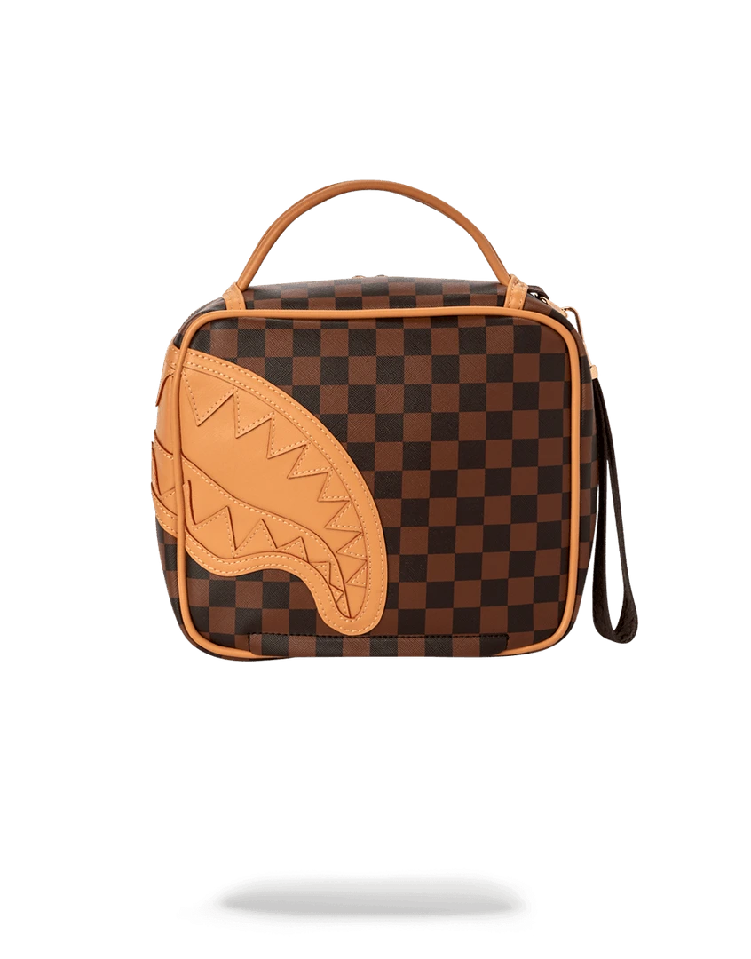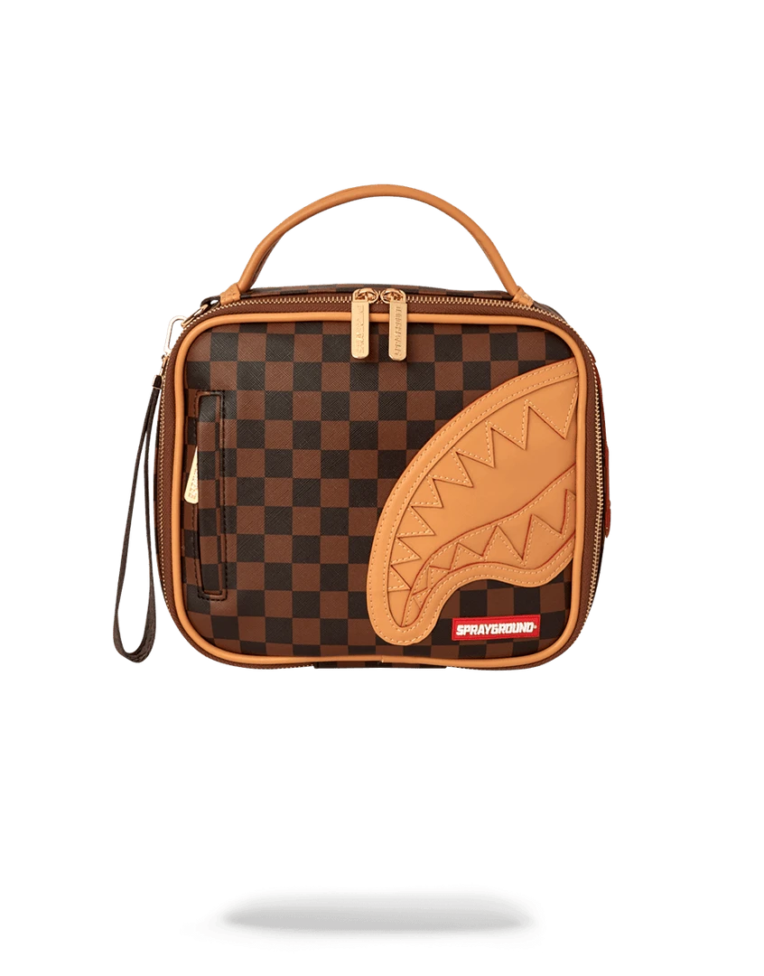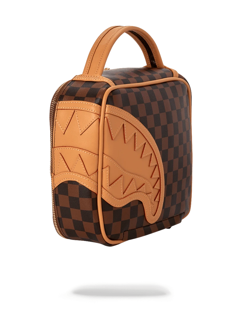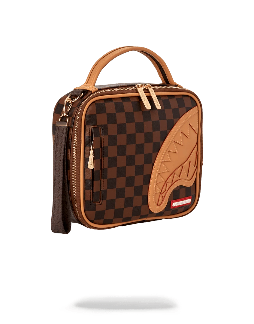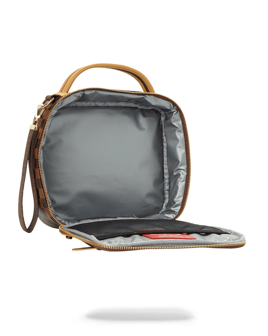 Dimensions: 8.5″ x 3″ x 8.5″ • Double zipper opening • Top handle • Removeable side handle • Gold zippers with metal hardware • Zippered stash pocket
