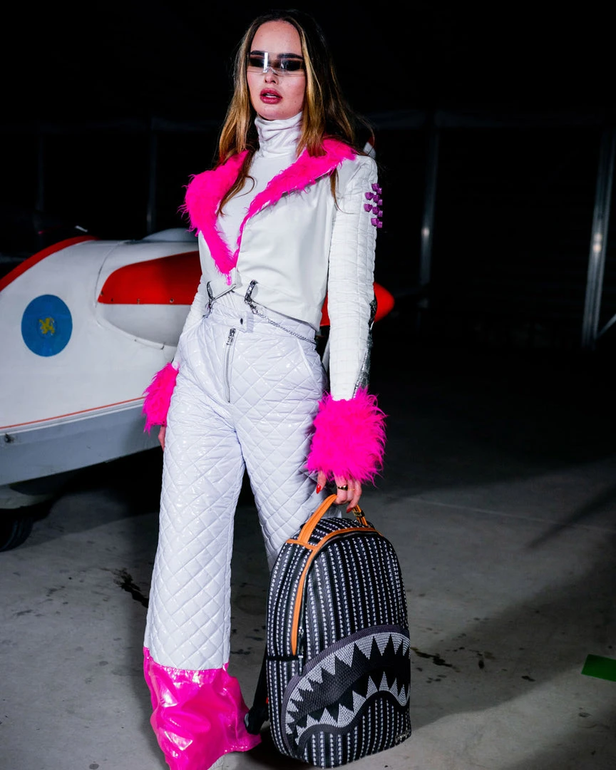 Dimensions: 18″ x 6″ x 11.5″ • Front zipper pocket • Side pockets • Zippered Stash pocket • Separate velour sunglass compartment • Ergonomic mesh back padding • Adjustable Straps for custom sizing • Silver zippers with metal hardware • Metal “Sprayground Authentic” badge • Slide through back sleeve connects to carry-on luggage to free your hands
