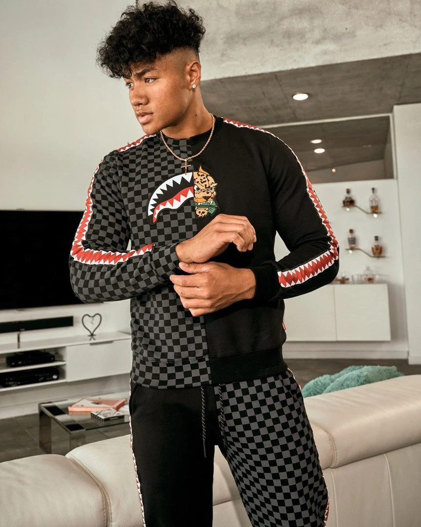 Vertical shark mouth webbing tape trim at side seam