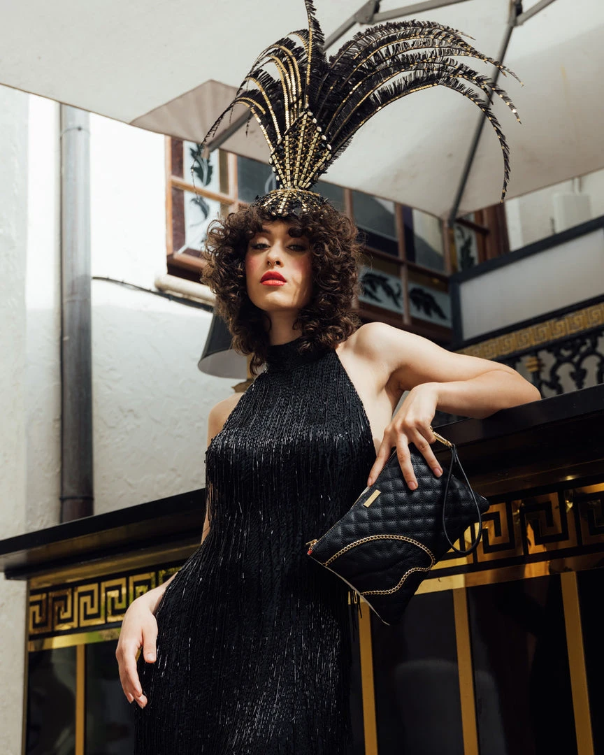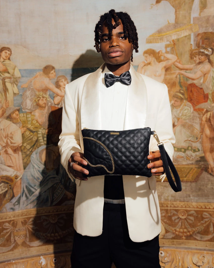 Pouch with removable wristlet strap, Handle on front panel, Zip Closure, secret stash pocket on side seam