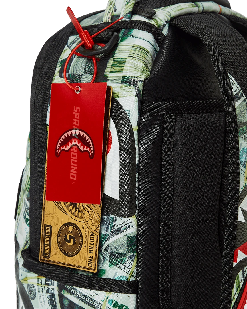 Dimensions: 18″ x 6″ x 11.5″ • Front zipper pocket • Side pockets • Zippered Stash pocket • Separate velour sunglass compartment • Ergonomic mesh back padding • Adjustable Straps for custom sizing • Gold zippers with metal hardware • Metal “Sprayground Authentic” badge • Slide through back sleeve connects to carry-on luggage to free your hands