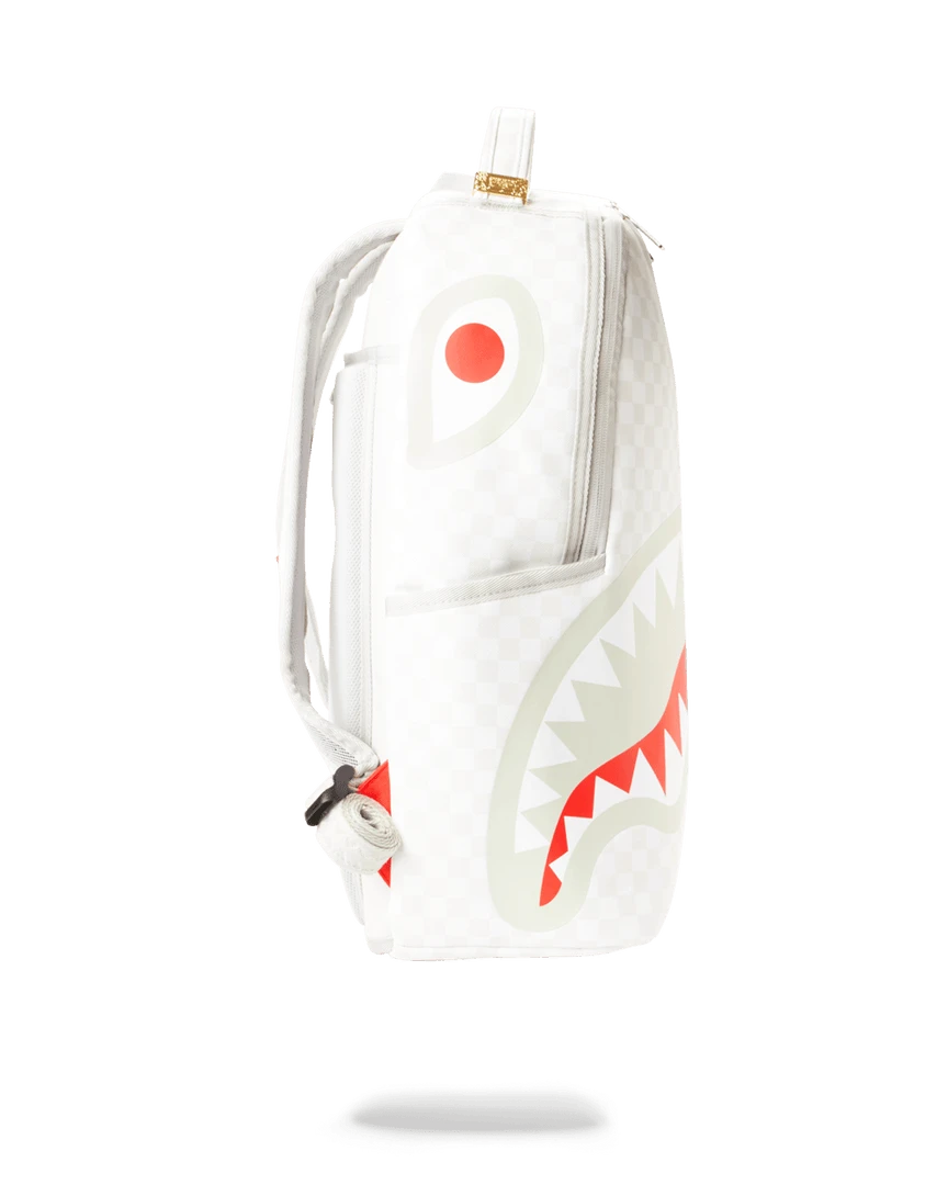 Dimensions: 18″ x 6″ x 11.5″ • Front zipper pocket • Side pockets • Zippered Stash pocket • Separate velour sunglass compartment • Ergonomic mesh back padding • Adjustable Straps for custom sizing • Silver zippers with metal hardware • Metal “Sprayground Authentic” badge • Slide through back sleeve connects to carry-on luggage to free your hands