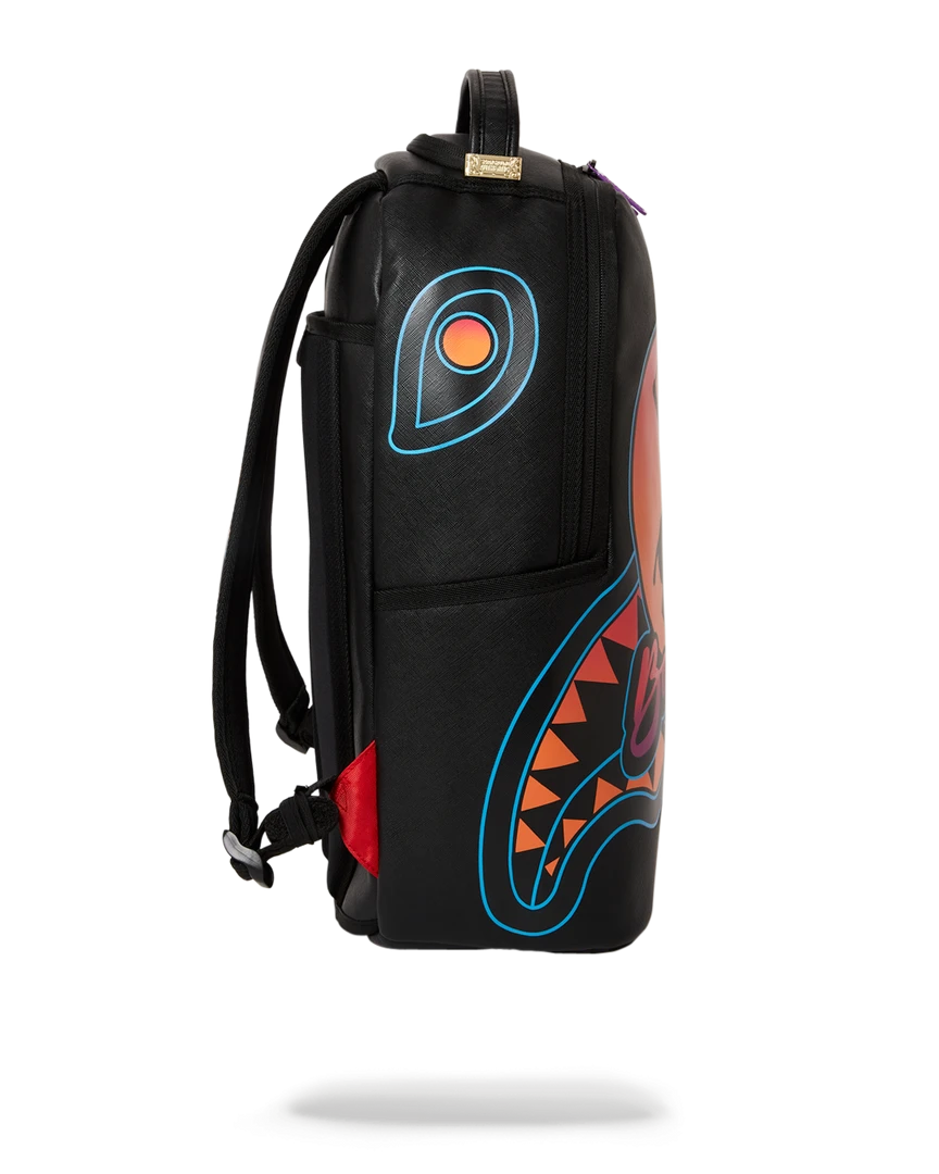 Dimensions: 18″ x 6″ x 11.5″ • Front zipper pocket • Side pockets • Zippered Stash pocket • Separate velour sunglass compartment • Ergonomic mesh back padding • Adjustable Straps for custom sizing • Gold zippers with metal hardware • Metal “Sprayground Authentic” badge • Slide through back sleeve connects to carry-on luggage to free your hands