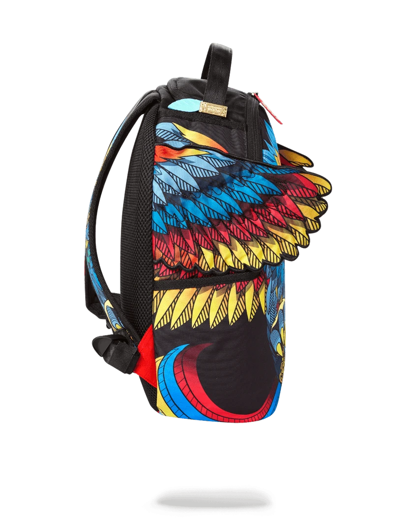 Dimensions: 15″ x 5″ x 10″ • Side pockets • Zippered Stash pocket • Separate velour sunglass compartment • Ergonomic mesh back padding • Adjustable Straps for custom sizing • Pink and blue feather zippers with metal hardware