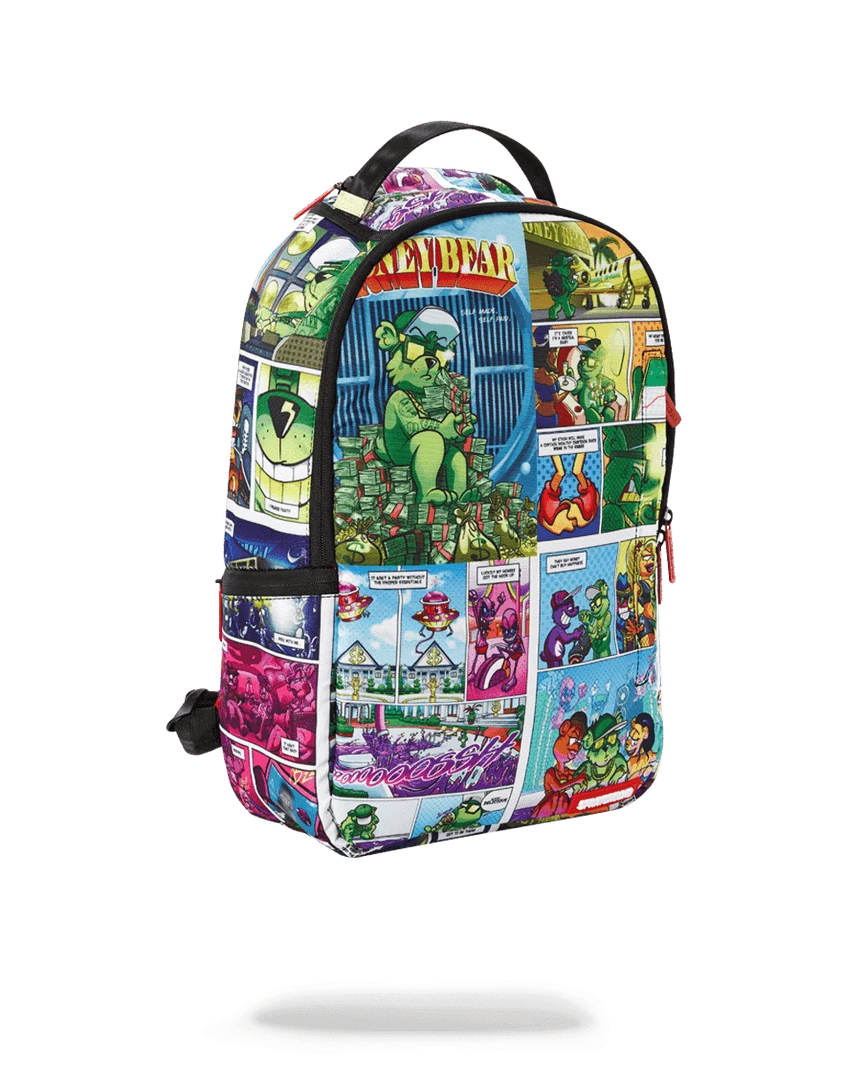 Dimensions: 18″ x 6″ x 11.5″ ∙ Front zipper pocket ∙ Side pockets ∙ Zippered Stash pocket ∙ Ergonomic mesh back padding ∙ Adjustable Straps for custom sizing ∙ Nylon Zippers with Metal Hardware ∙ Metal “Sprayground Authentic” badge ∙ Slide through back sleeve connects to Carry on luggage to free your hands