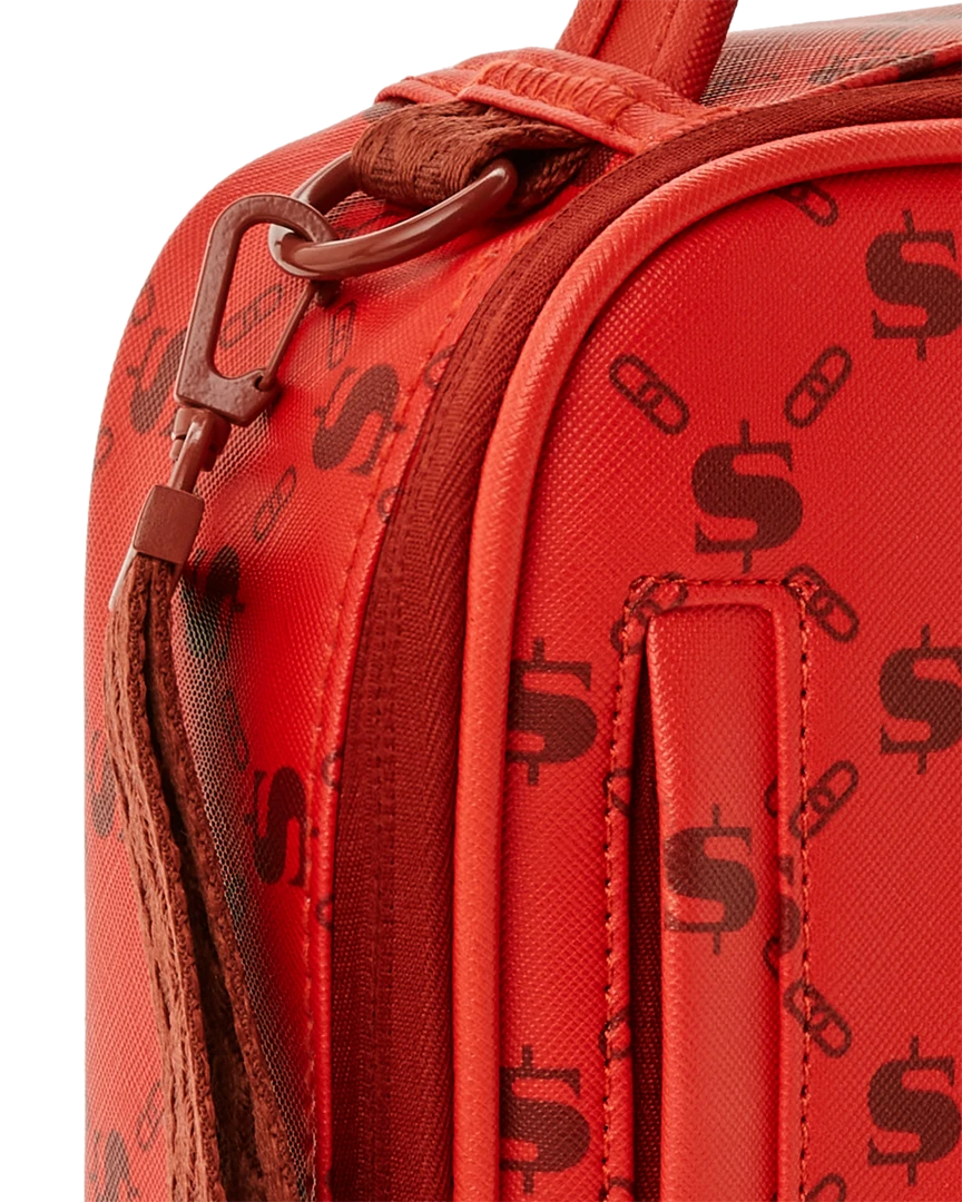 Dimensions: 8.5″ x 3″ x 8.5″ • Double zipper opening • Top handle • Removable side handle • Gold zippers with metal hardware • Zippered stash pocket