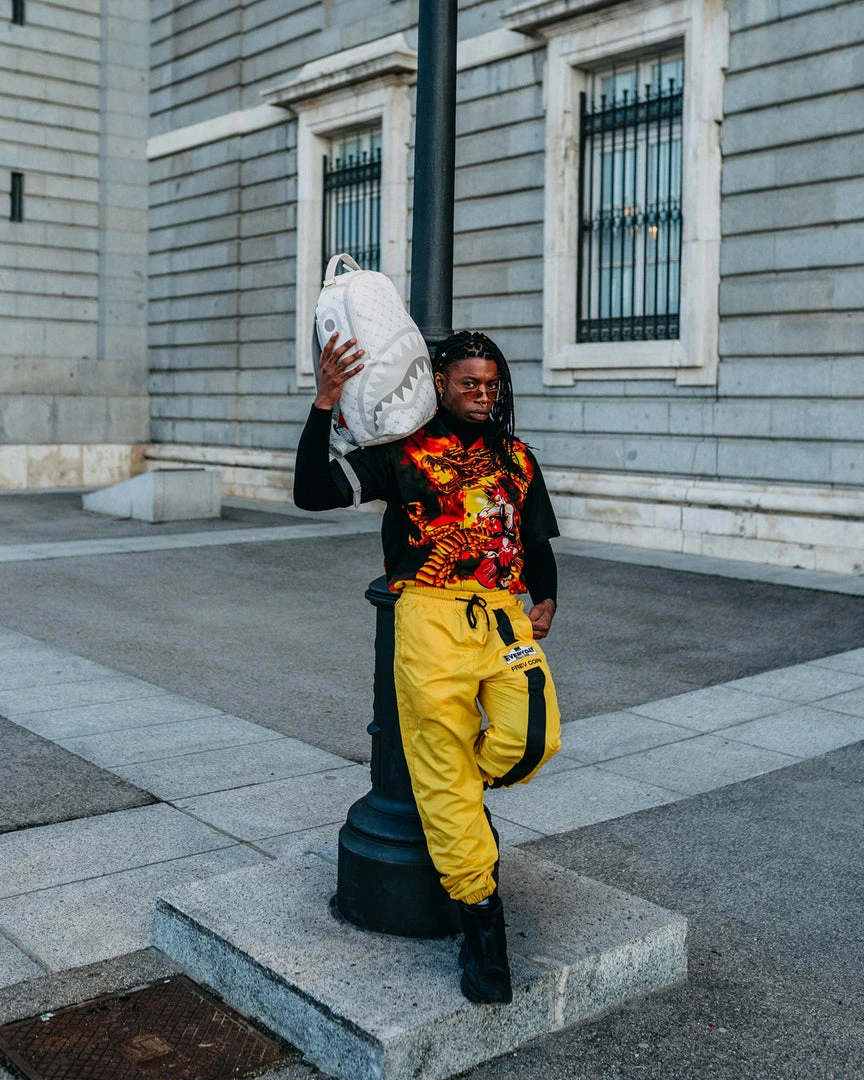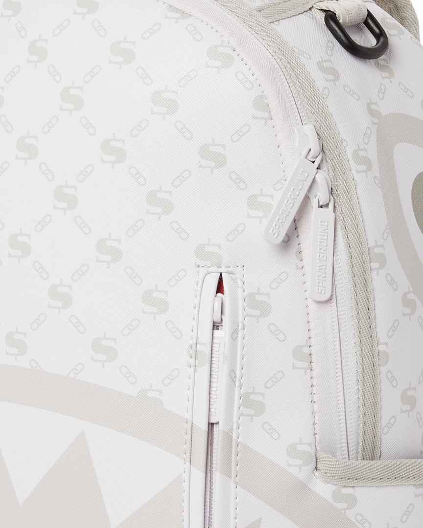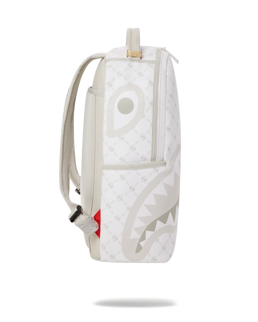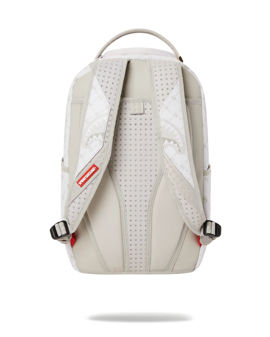 Dimensions: 18″ x 6″ x 11.5″ • Front zipper pocket • Side pockets • Zippered Stash pocket • Separate velour sunglass compartment • Ergonomic mesh back padding • Adjustable Straps for custom sizing • Red zippers with metal hardware • Metal “Sprayground Authentic” badge • Slide through back sleeve connects to carry-on luggage to free your hands