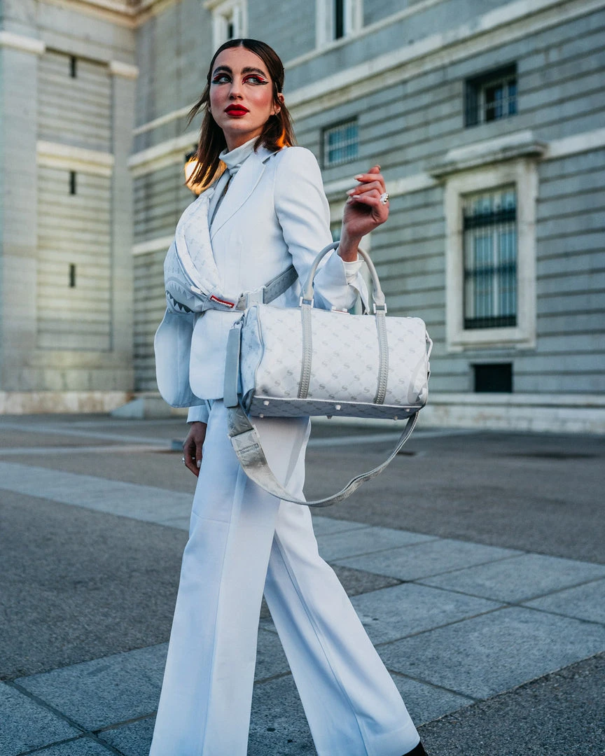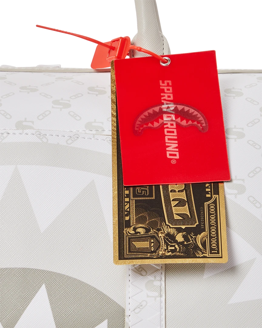 Dimensions: 8″ x 7.5″ x 13″ • Metal zipper pocket• Back Zippers •Zippered sneaker pocket • gold zippers • Adjustable Straps for custom sizing •Metal Zippers with Metal Hardware • bag of Sprayground money