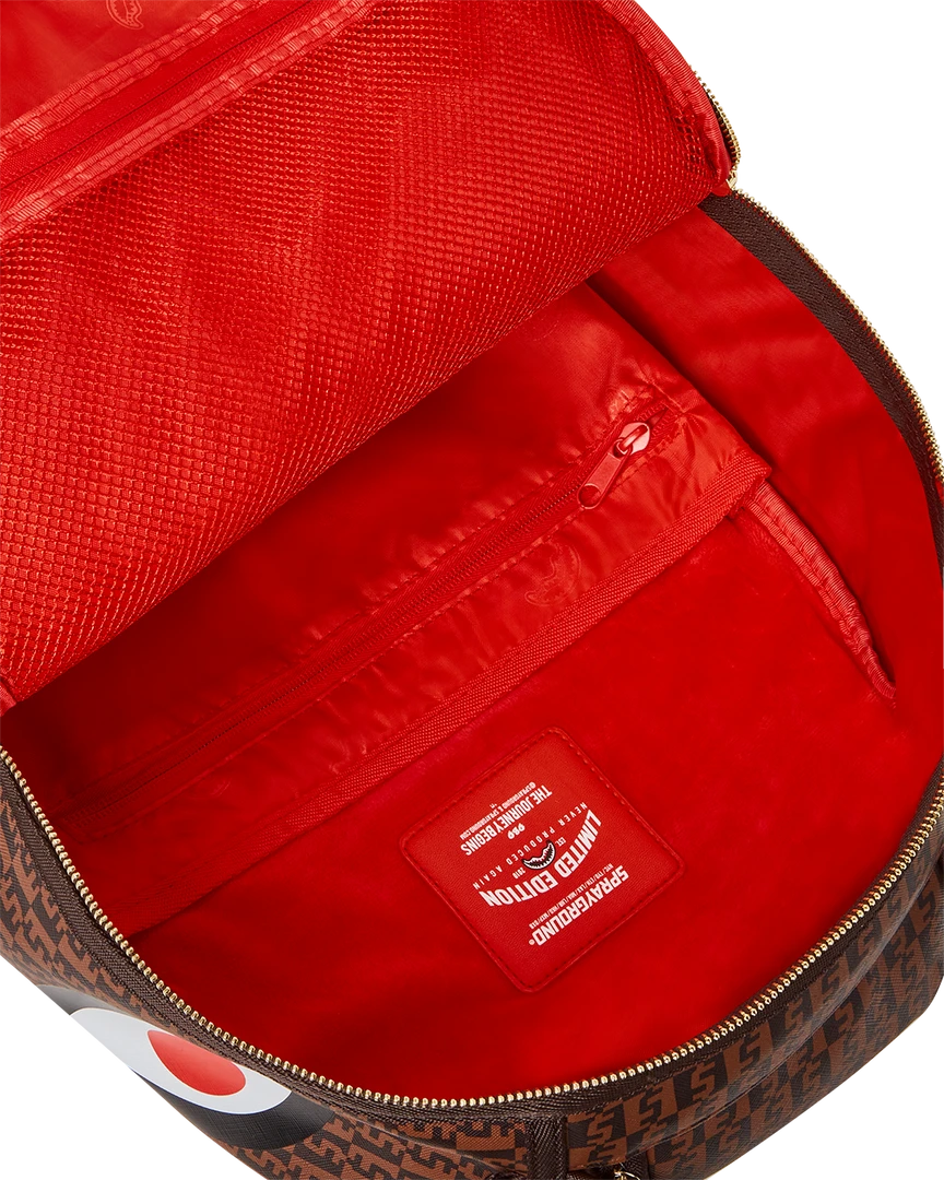Dimensions: 18″ x 6″ x 11.5″ • Front zipper pocket • Side pockets • Zippered Stash pocket • Separate velour sunglass compartment • Ergonomic mesh back padding • Adjustable Straps for custom sizing • Gold zippers with metal hardware • Metal “Sprayground Authentic” badge • Slide through back sleeve connects to carry-on luggage to free your hands