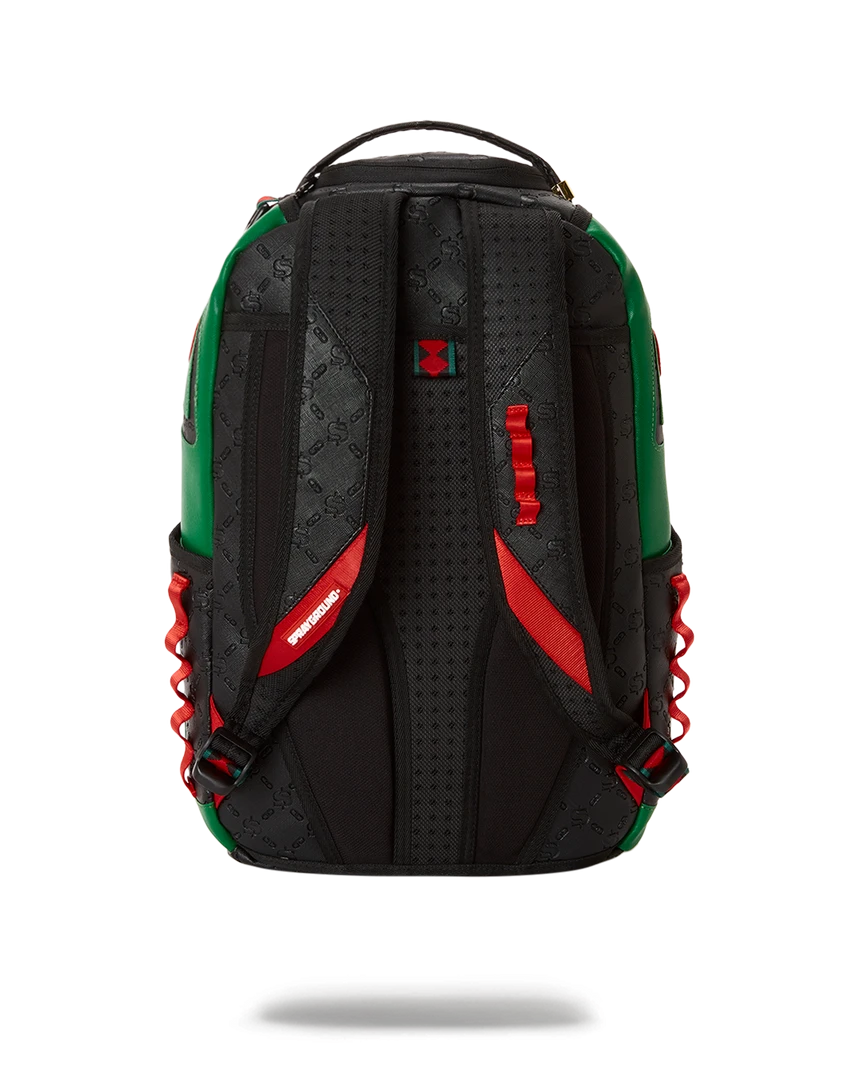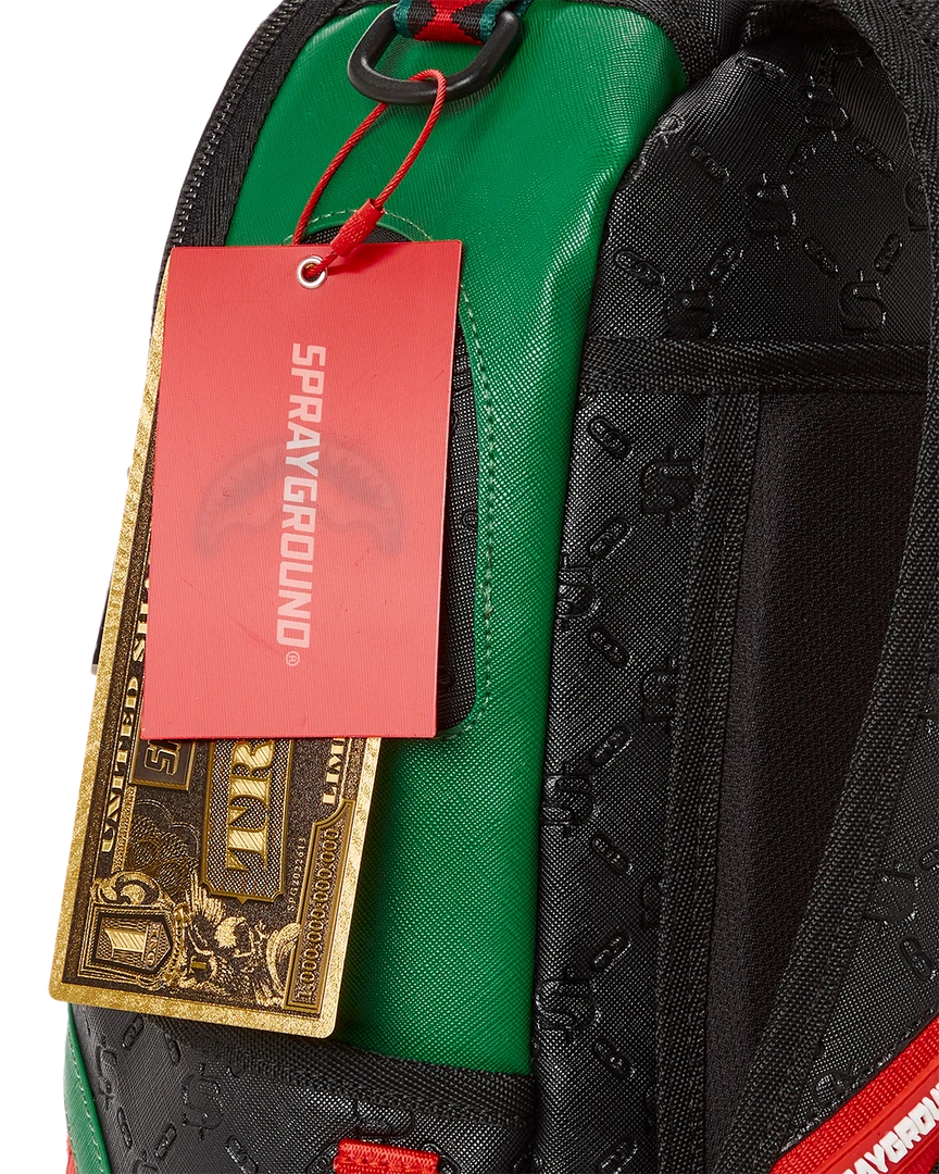 Dimensions: 18″ x 6″ x 11.5″ • Front zipper pocket • Side pockets • Zippered Stash pocket • Separate velour sunglass compartment • Ergonomic mesh back padding • Adjustable Straps for custom sizing • Gold zippers with metal hardware • Metal “Sprayground Authentic” badge • Slide through back sleeve connects to carry-on luggage to free your hands