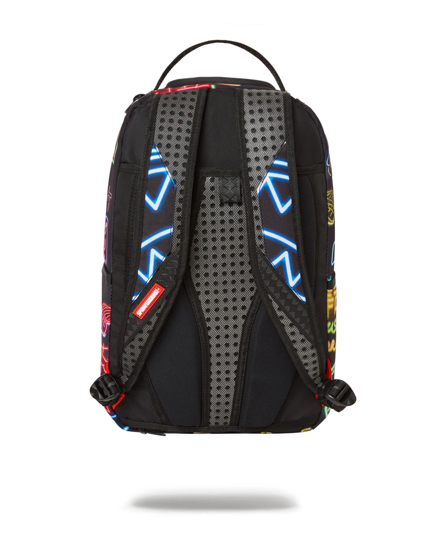 Dimensions: 18″ x 6″ x 11.5″ • Front zipper pocket • Side pockets • Zippered Stash pocket • Separate velour sunglass compartment • Ergonomic mesh back padding • Adjustable Straps for custom sizing • Green zippers with metal hardware • Metal “Sprayground Authentic” badge • Slide through back sleeve connects to carry on luggage to free your hands