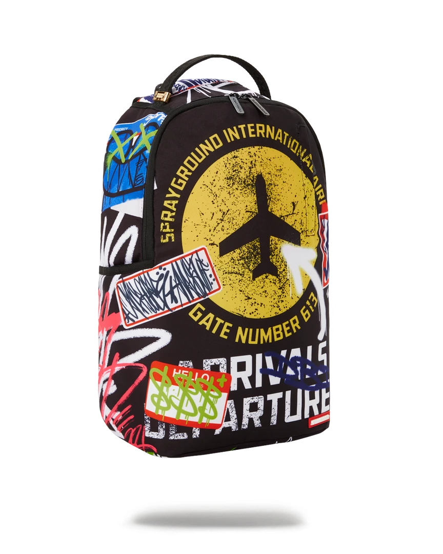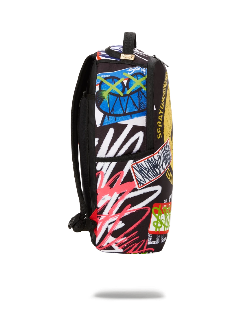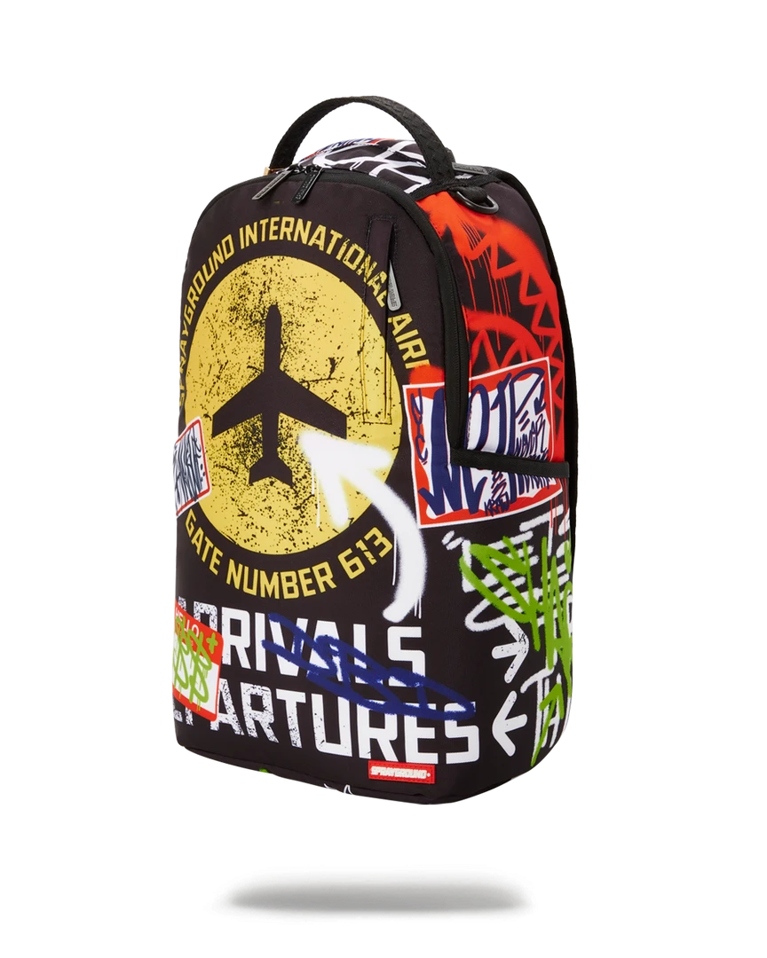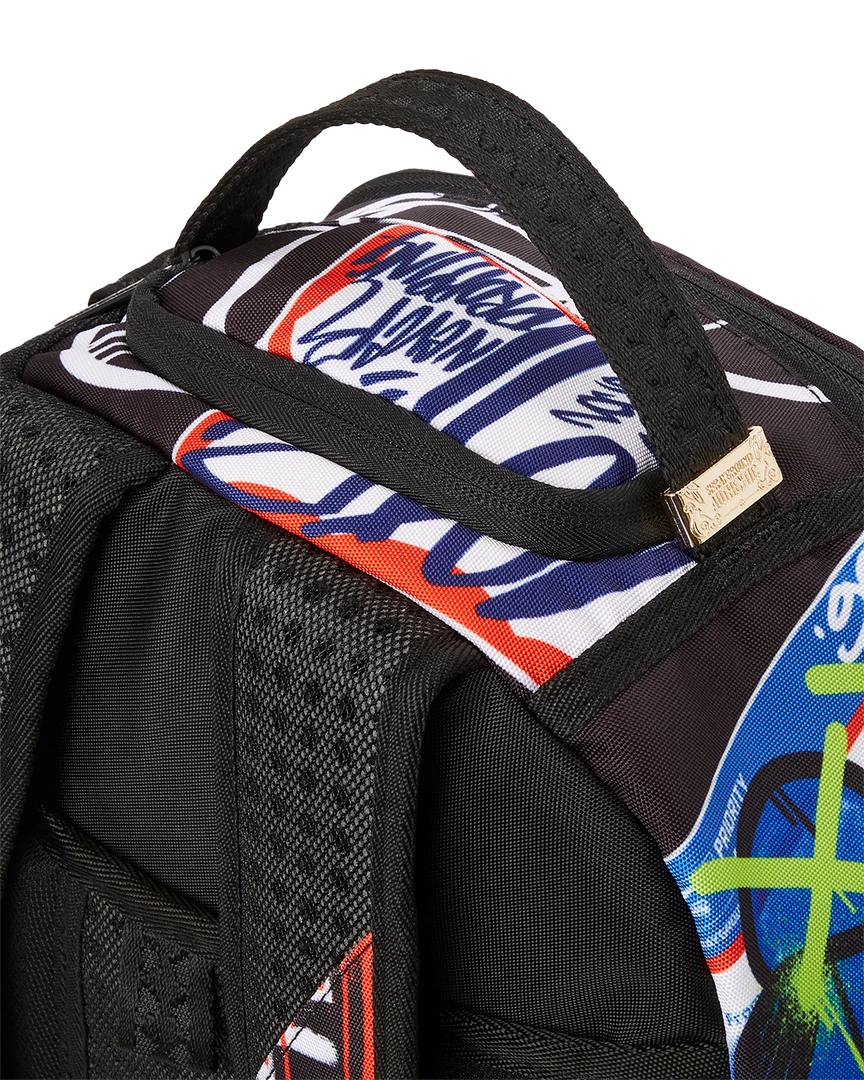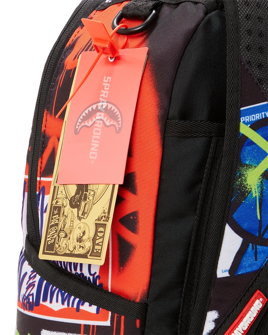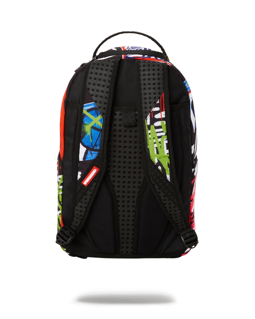 Dimensions: 18″ x 6″ x 11.5″ • Front zipper pocket • Side pockets • Zippered Stash pocket • Separate velour sunglass compartment • Ergonomic mesh back padding • Adjustable Straps for custom sizing • Green zippers with metal hardware • Metal “Sprayground Authentic” badge • Slide through back sleeve connects to carry on luggage to free your hands