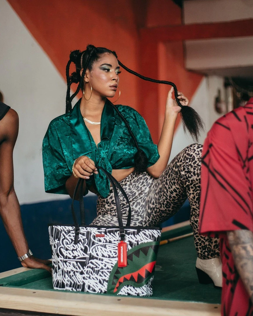Your over the shoulder bag doesn’t have to be boring anymore. Stand out with the printed Sprayground Totes. Includes Sprayground Logo Keychain Mirror.