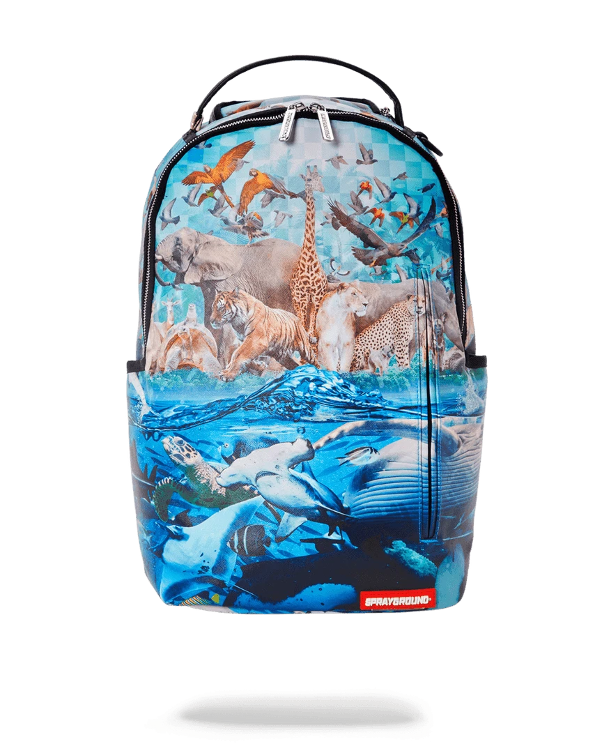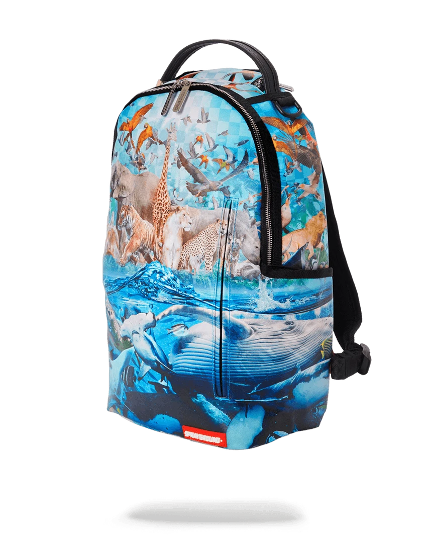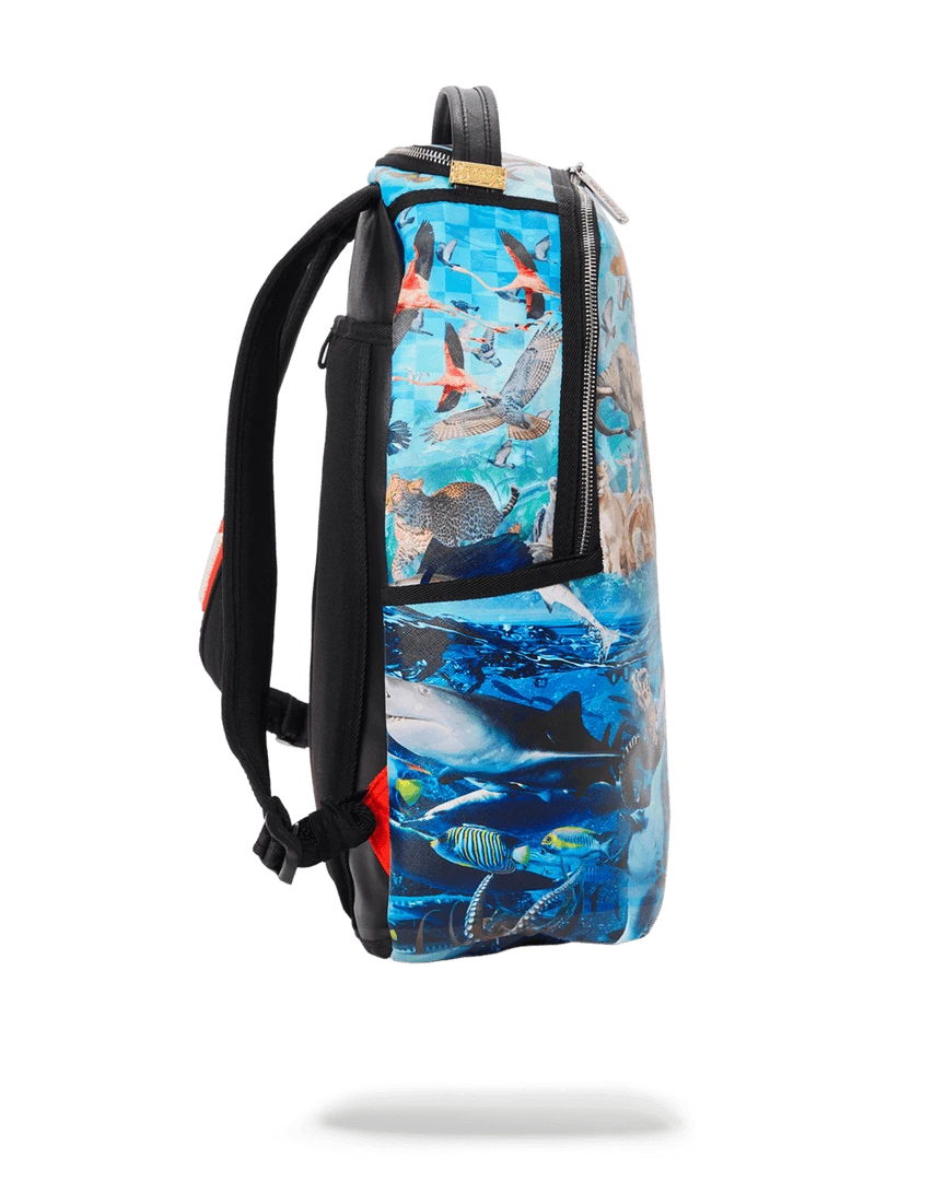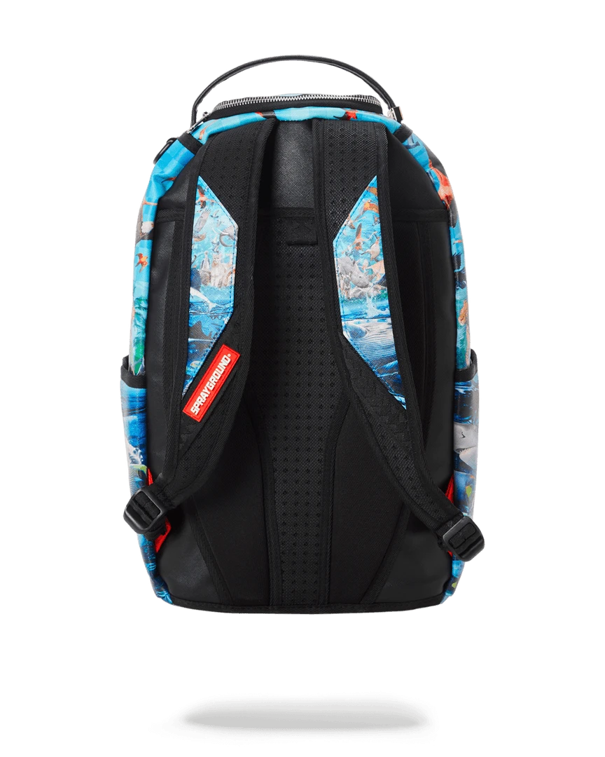 Dimensions: 18″ x 6″ x 11.5″ • Front zipper pocket • Side pockets • Zippered Stash pocket • Separate velour sunglass compartment • Ergonomic mesh back padding • Adjustable Straps for custom sizing • Gold zippers with metal hardware • Metal “Sprayground Authentic” badge • Slide through back sleeve connects to carry-on luggage to free your hands