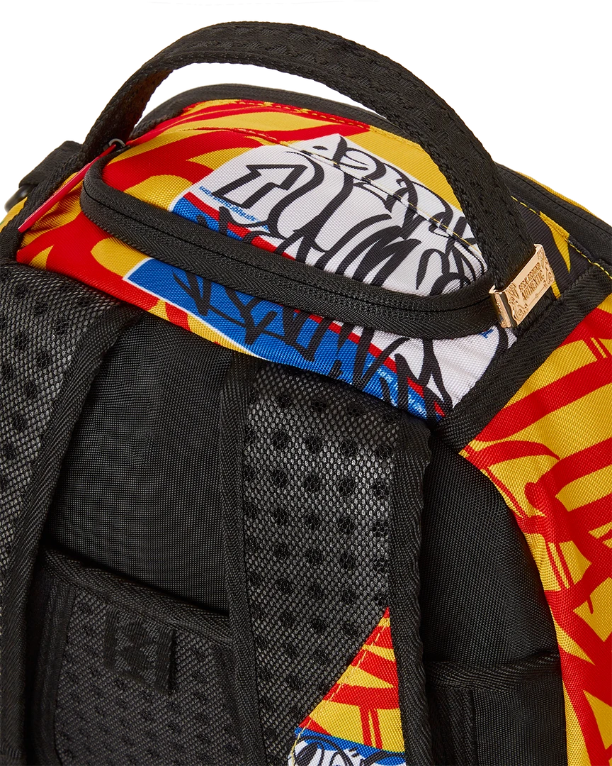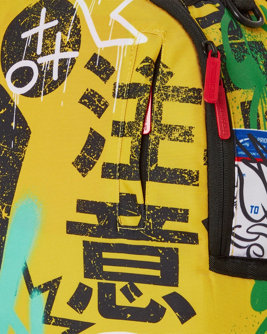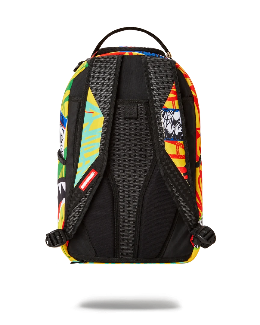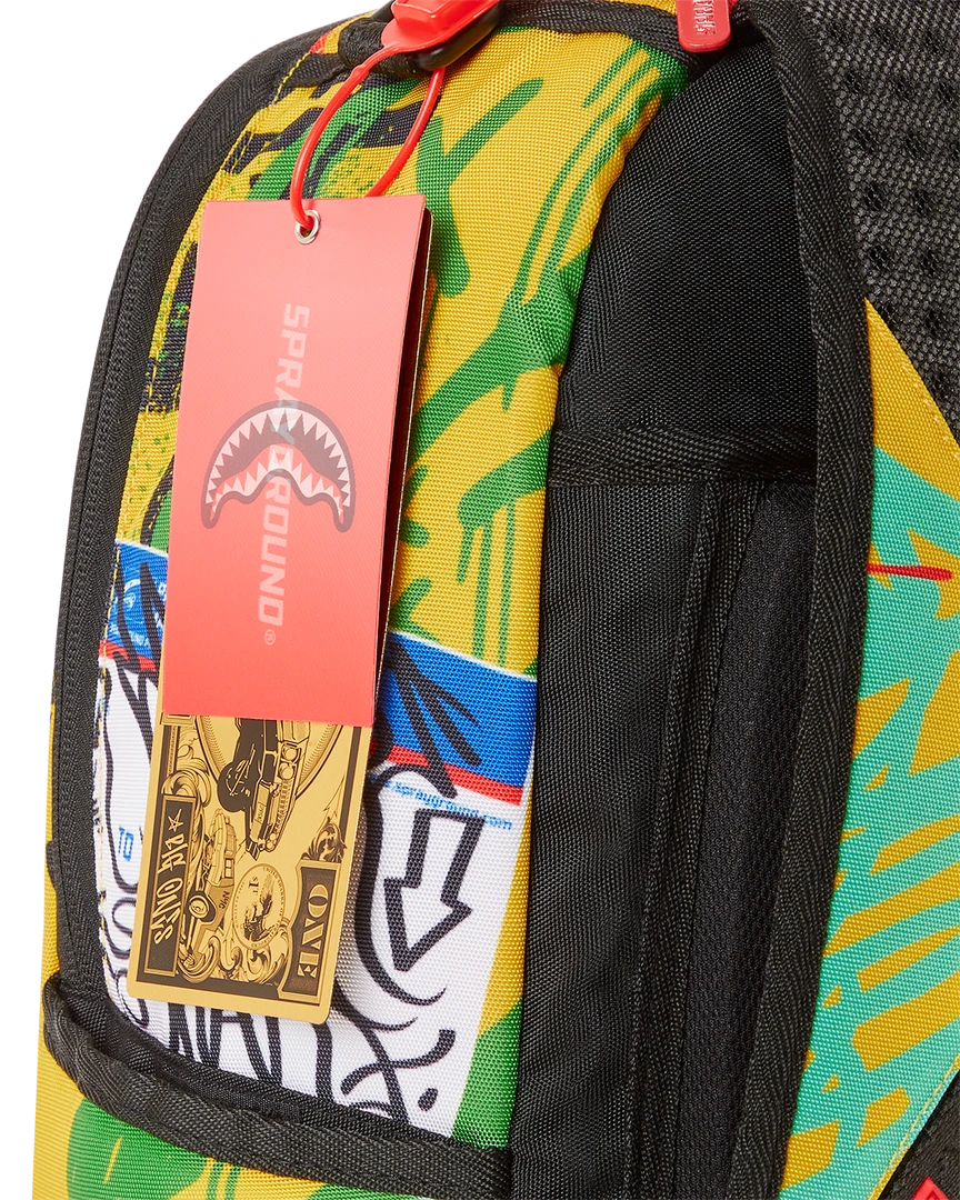 Dimensions: 18″ x 6″ x 11.5″ • Front zipper pocket • Side pockets • Zippered Stash pocket • Separate velour sunglass compartment • Ergonomic mesh back padding • Adjustable Straps for custom sizing • Green zippers with metal hardware • Metal “Sprayground Authentic” badge • Slide through back sleeve connects to carry on luggage to free your hands