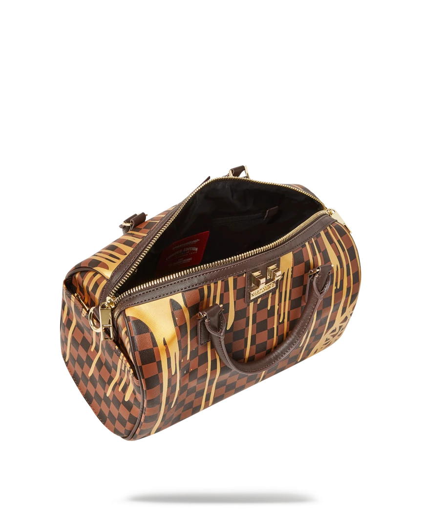 Dimensions: 8″ x 7.5″ x 13″ • Zippered top opening • Zippered pocket on back panel • Zippered side pocket • Removable adjustable strap for custom sizing with reinforced crossbody construction • Logo embossed shoulder pad for comfort • Zippers with metal hardware • Zippered stash pocket