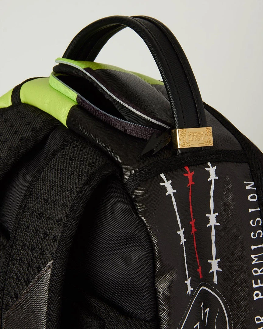 Dimensions: 18″ x 6″ x 11.5″ • Front zipper pocket • Side pockets • Zippered Stash pocket • Separate velour sunglass compartment • Ergonomic mesh back padding • Adjustable Straps for custom sizing • Black lightning bolt zippers with metal hardware • Metal “Sprayground Authentic” badge • Slide through back sleeve connects to carry-on luggage to free your hands