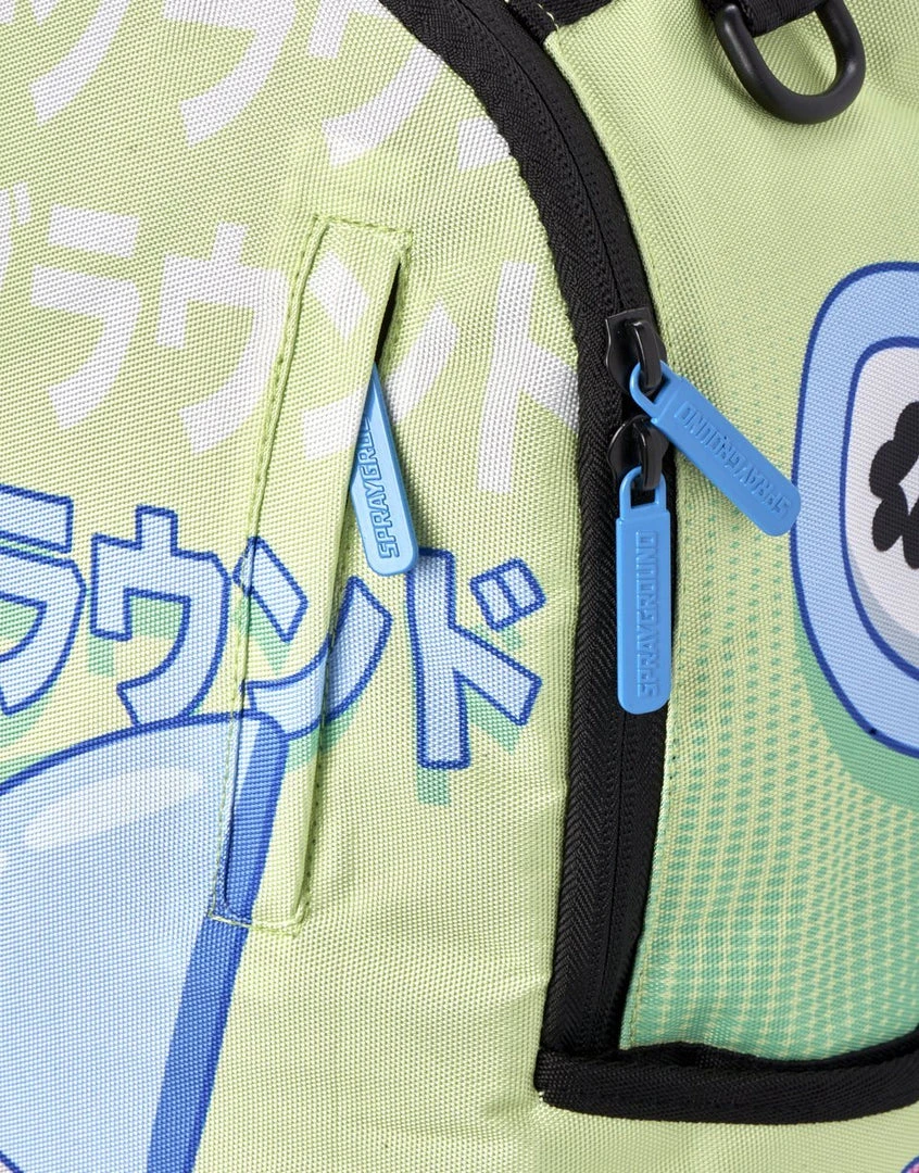 Dimensions: 18″ x 6″ x 11.5″ • Front zipper pocket • Side pockets • Zippered Stash pocket • Separate velour sunglass compartment • Ergonomic mesh back padding • Adjustable Straps for custom sizing • Blue zippers with metal hardware • Metal “Sprayground Authentic” badge • Slide through back sleeve connects to carry-on luggage to free your hands