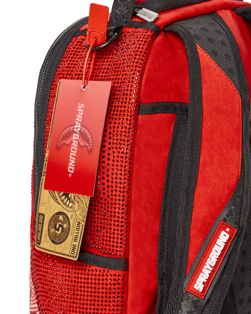 Dimensions: 18″ x 6″ x 11.5″ • Front zipper pocket • Side pockets • Zippered Stash pocket • Separate velour sunglass compartment • Ergonomic mesh back padding • Adjustable Straps for custom sizing • Gold zippers with metal hardware • Metal “Sprayground Authentic” badge • Slide through back sleeve connects to carry-on luggage to free your hands