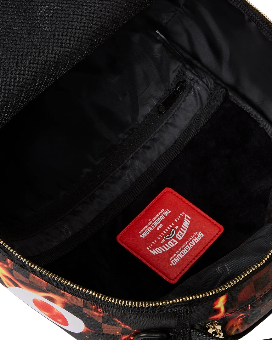 Dimensions: 18″ x 6″ x 11.5″ • Front zipper pocket • Side pockets • Zippered Stash pocket • Separate velour sunglass compartment • Ergonomic mesh back padding • Adjustable Straps for custom sizing • Gold zippers with metal hardware • Metal “Sprayground Authentic” badge • Slide through back sleeve connects to carry-on luggage to free your hands