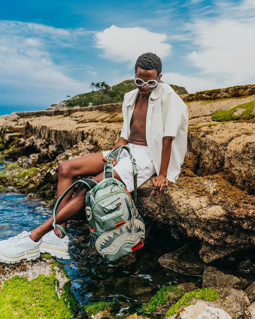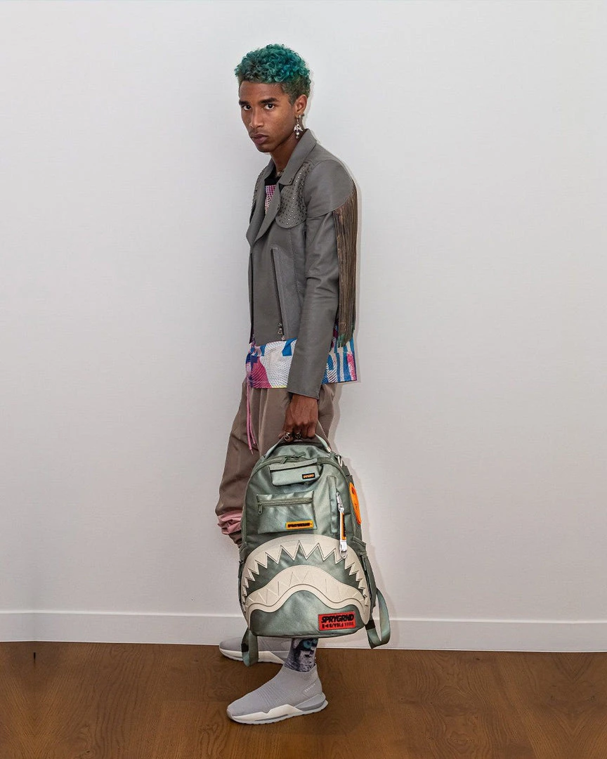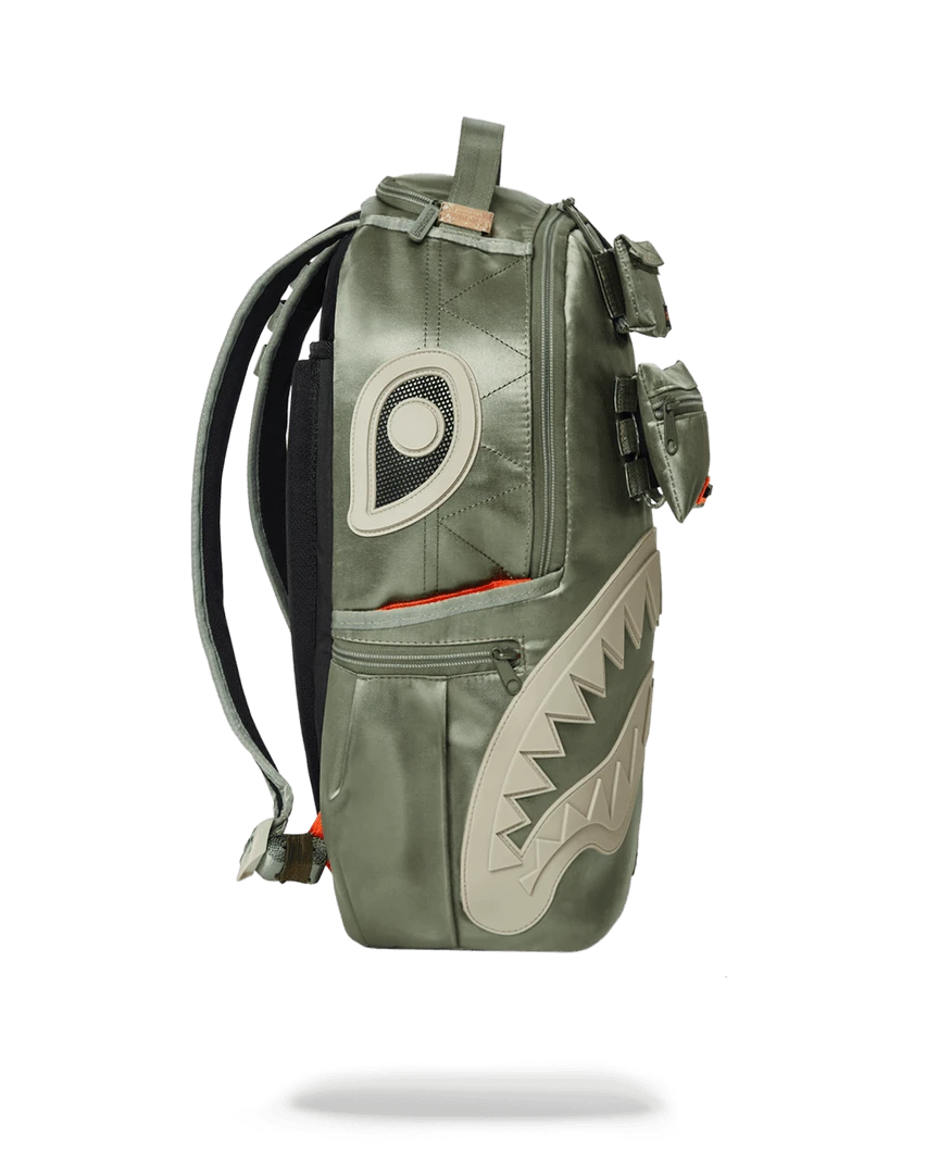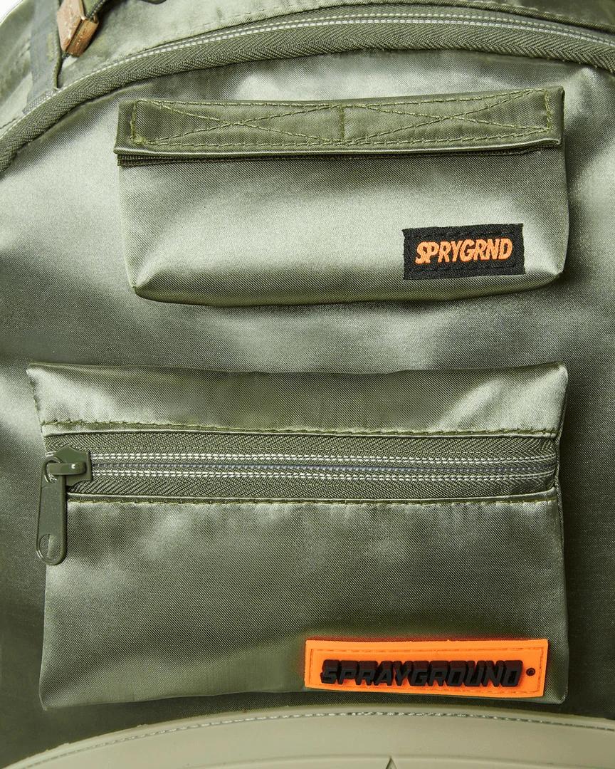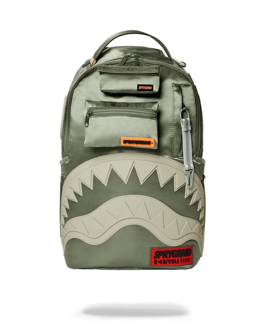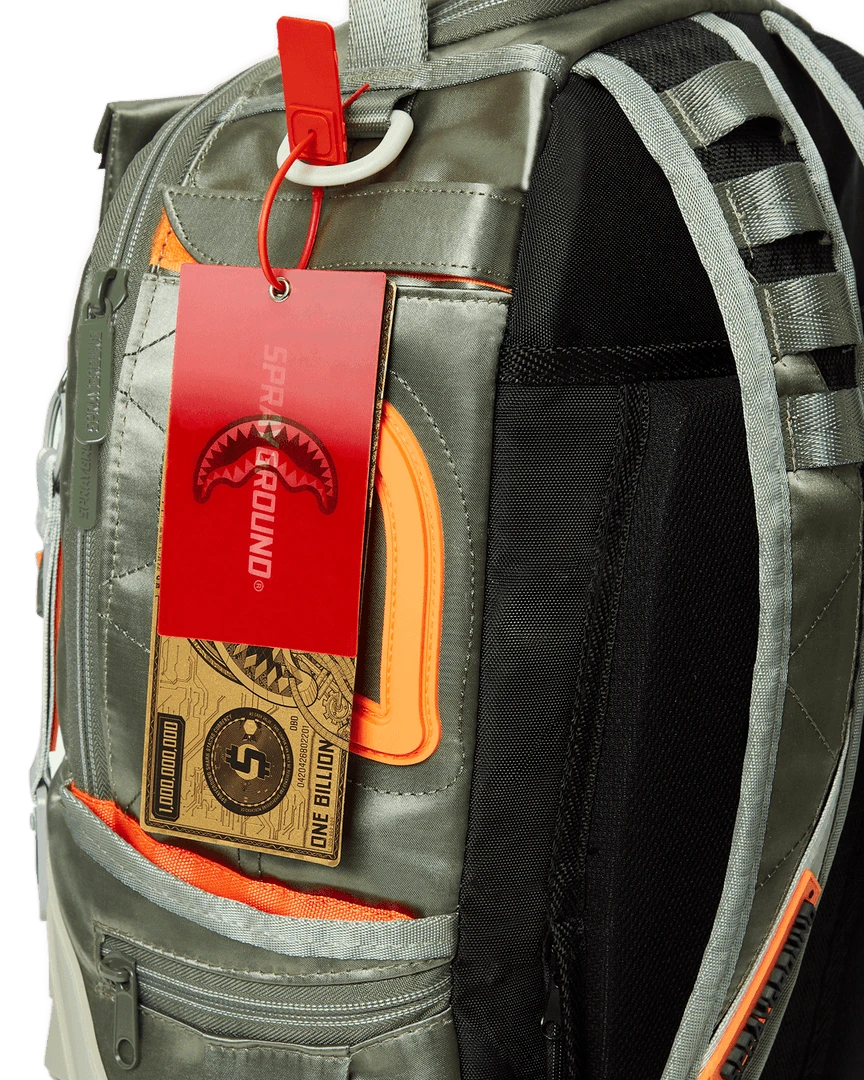 Dimensions: 18″ x 6″ x 11.5″ • Front zipper pocket • Side pockets • Zippered Stash pocket • Separate velour sunglass compartment • Ergonomic mesh back padding • Adjustable Straps for custom sizing • Red zippers with metal hardware • Metal “Sprayground Authentic” badge • Slide through back sleeve connects to carry-on luggage to free your hands